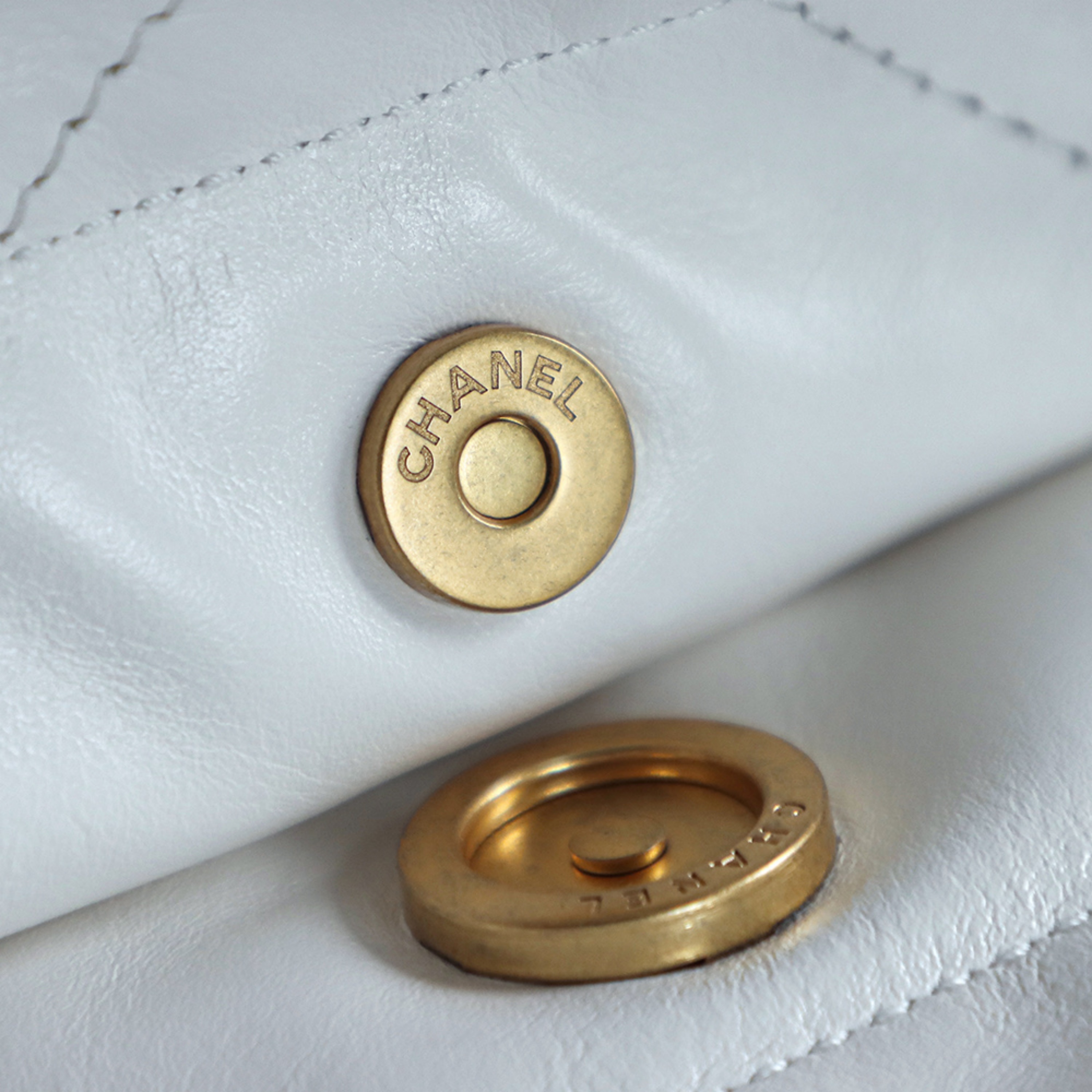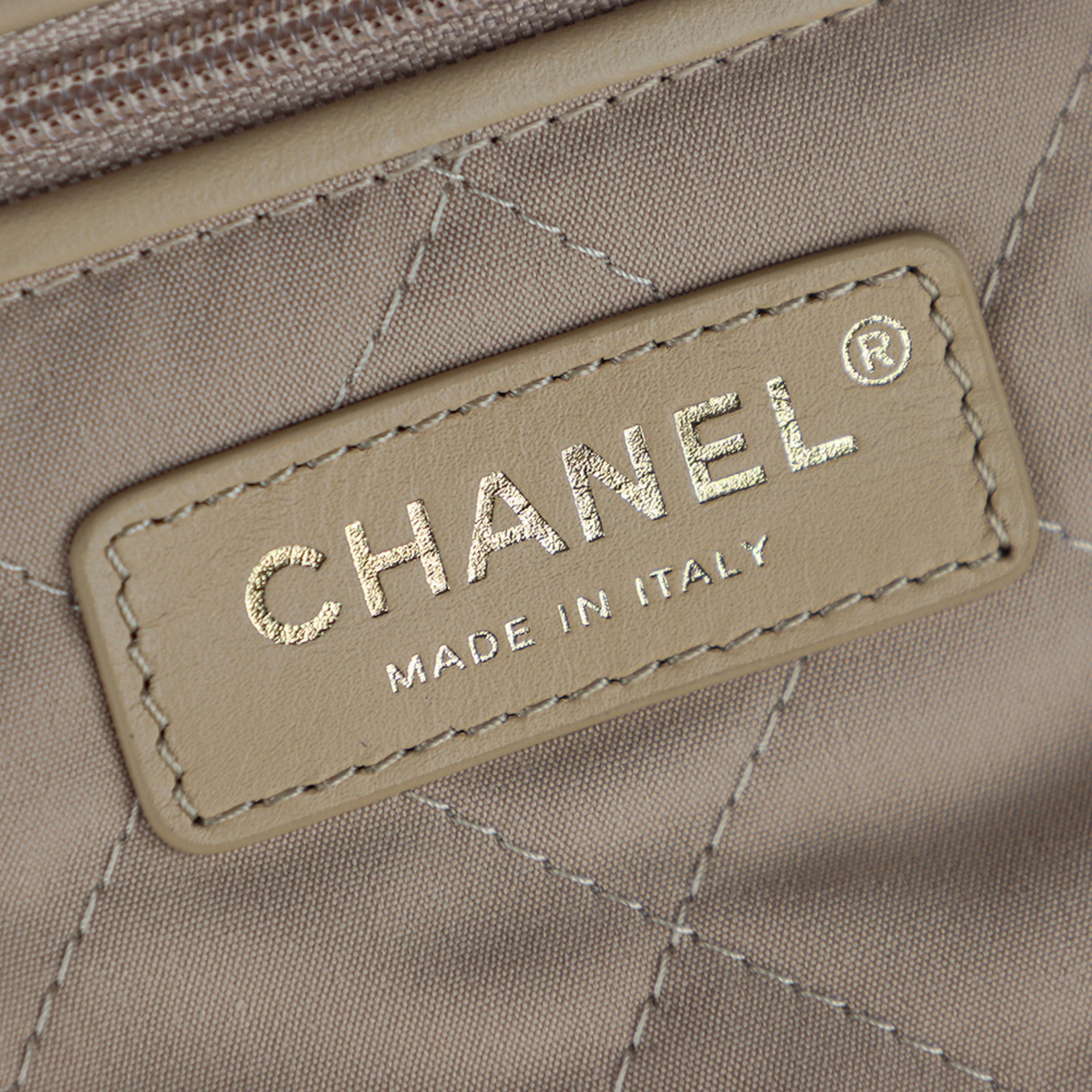 Electroplated Hardware: Light gold-finish components cast from solid brass, featuring the iconic CC Turn-Lock. Each piece undergoes anti-tarnish plating and hand-polishing to achieve museum-grade luminosity.