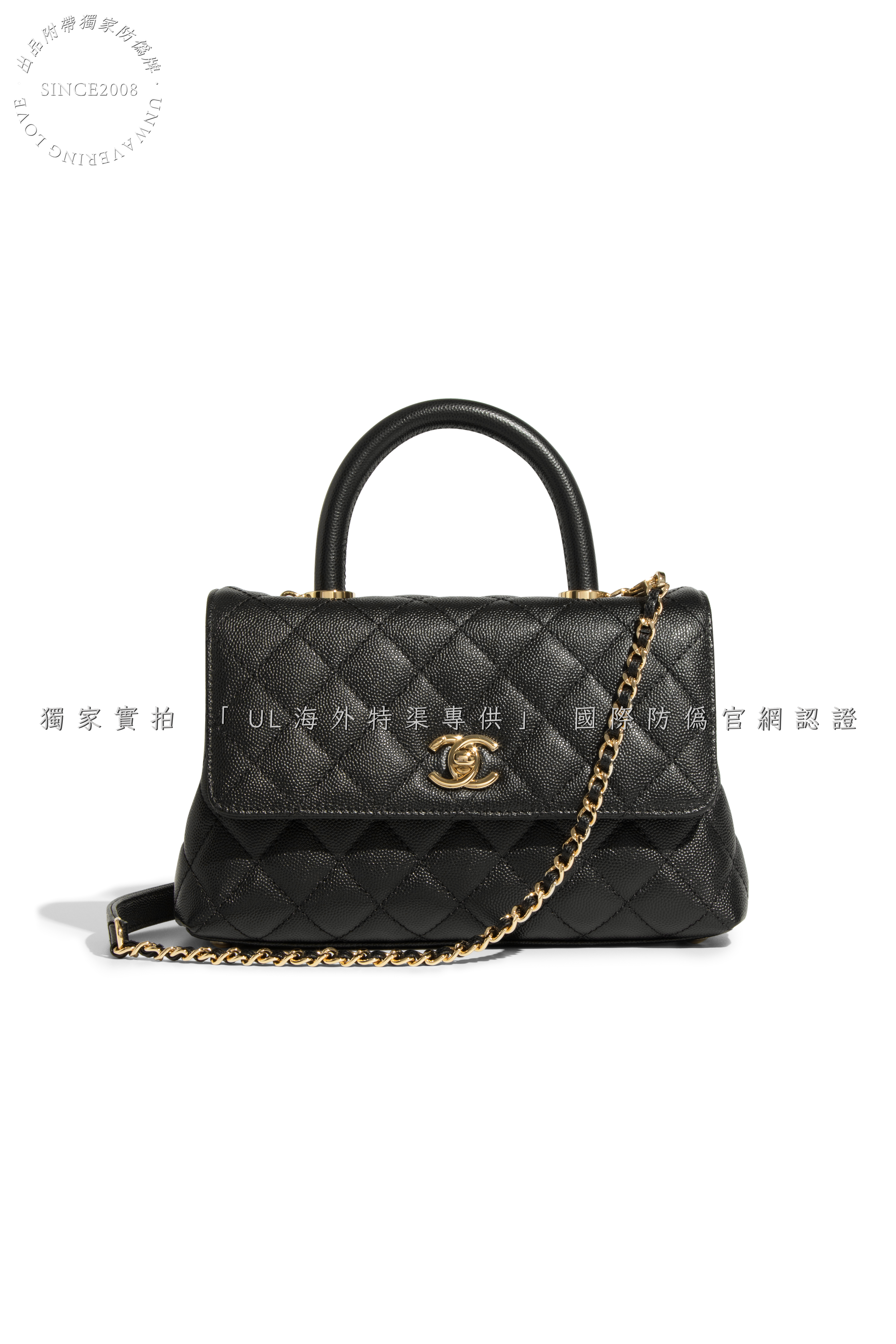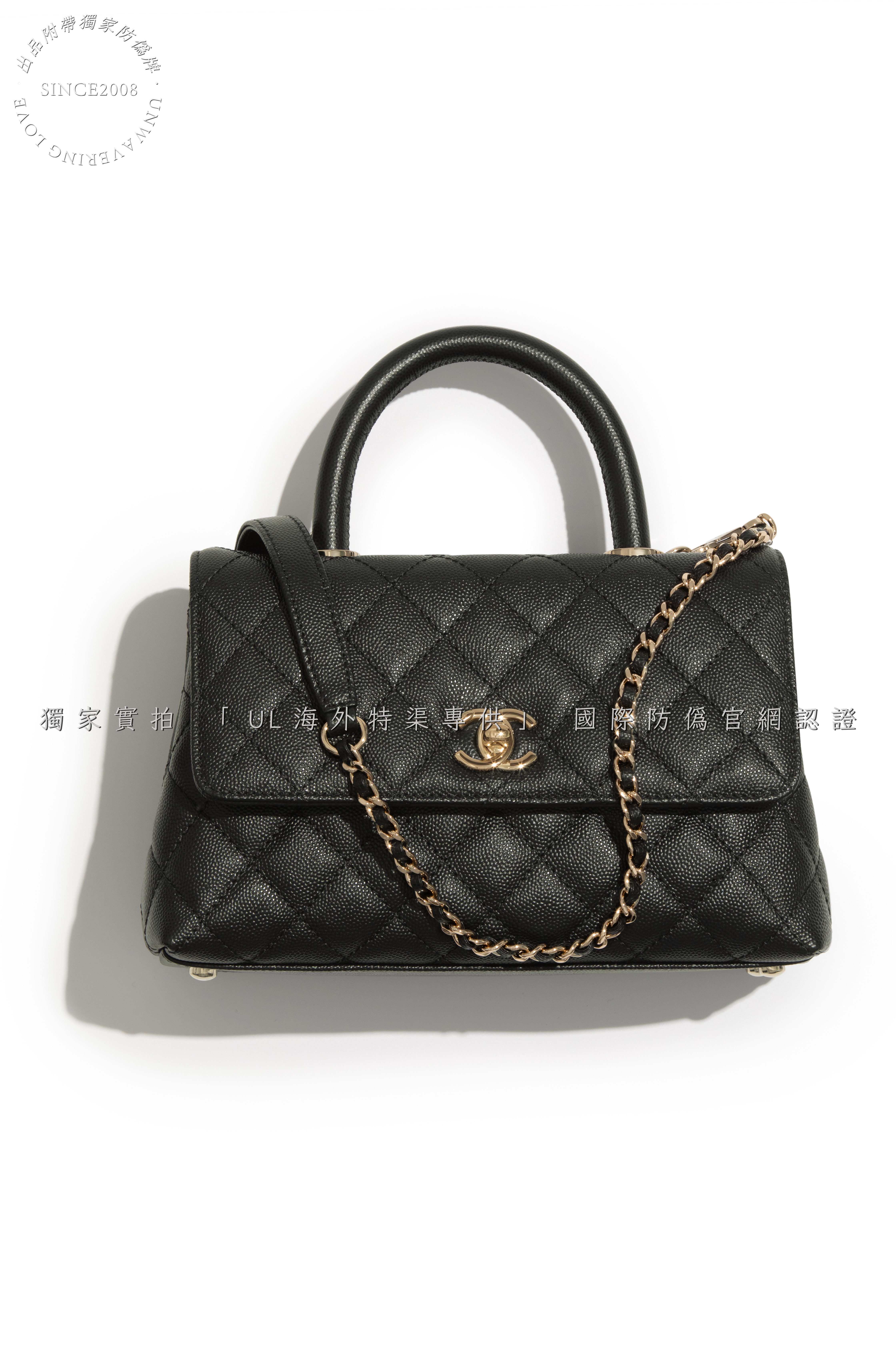 Design Features: Top Handle with Detachable Chain Strap, Structured Silhouette, Diamond-Quilted Stitching, Signature CC Turn-Lock Closure