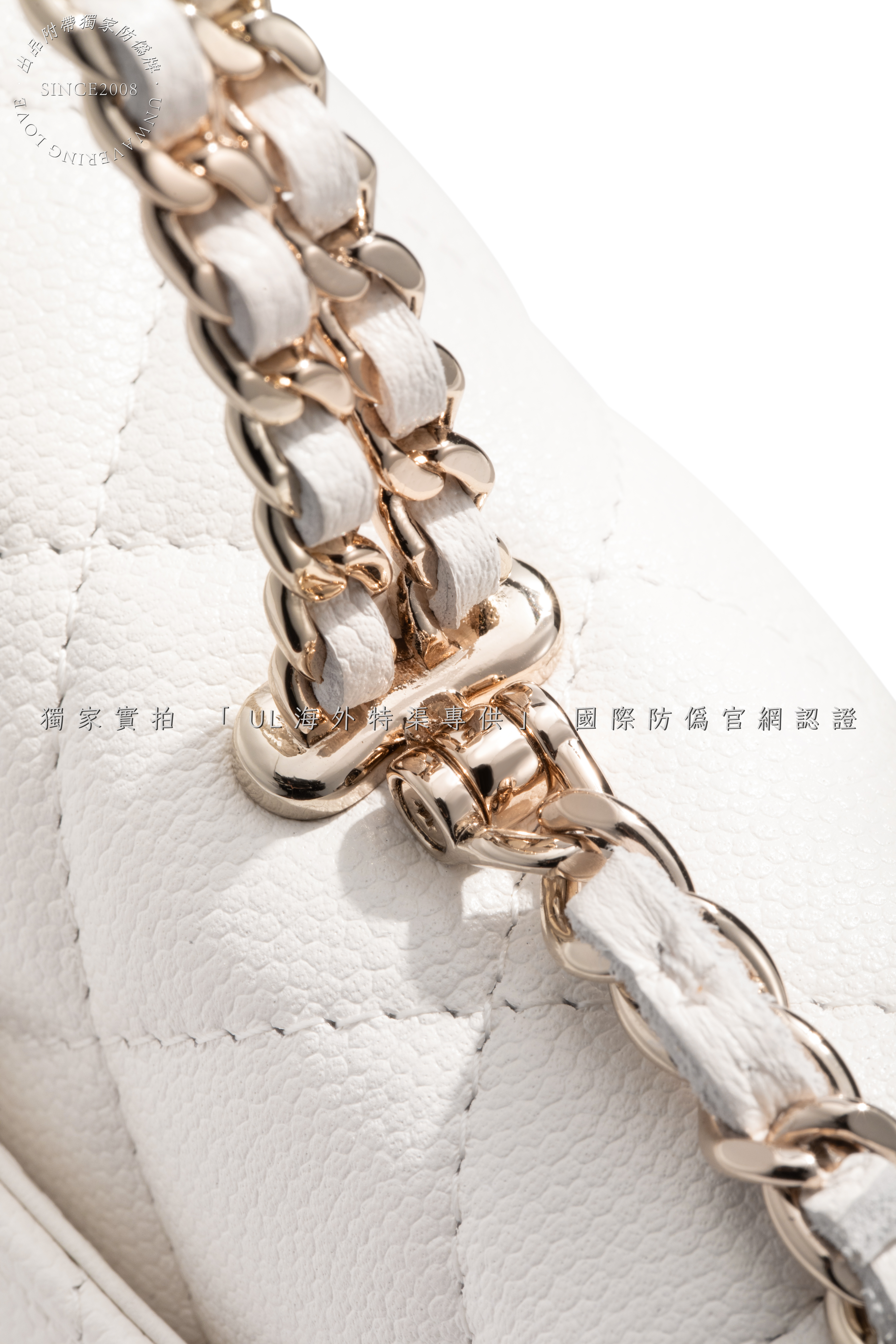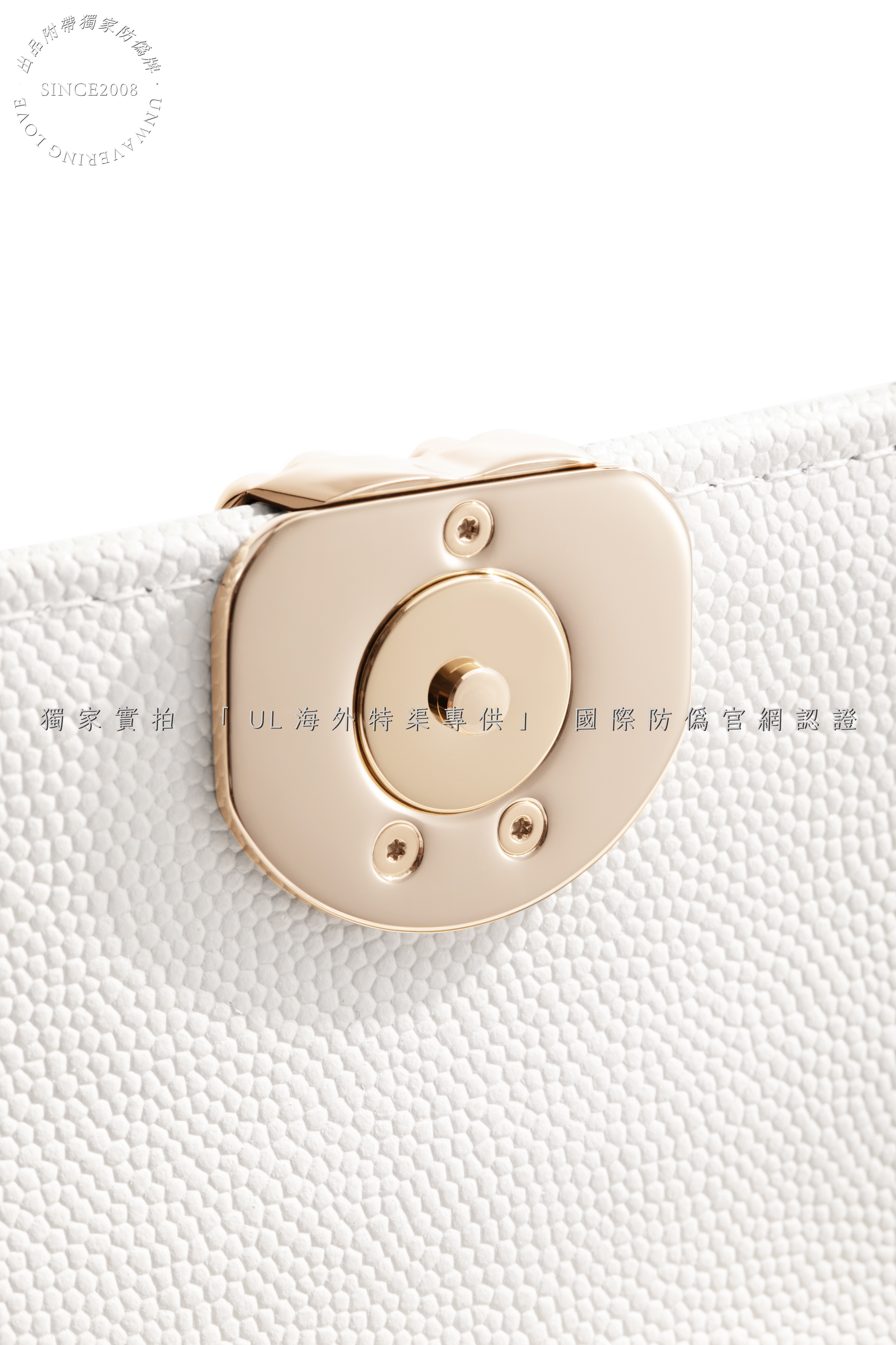 Leather: Sourced from the finest European tanneries, the diamond-quilted caviar leather offers exceptional scratch resistance and a luminous texture. Its robust yet supple nature ensures lasting elegance.