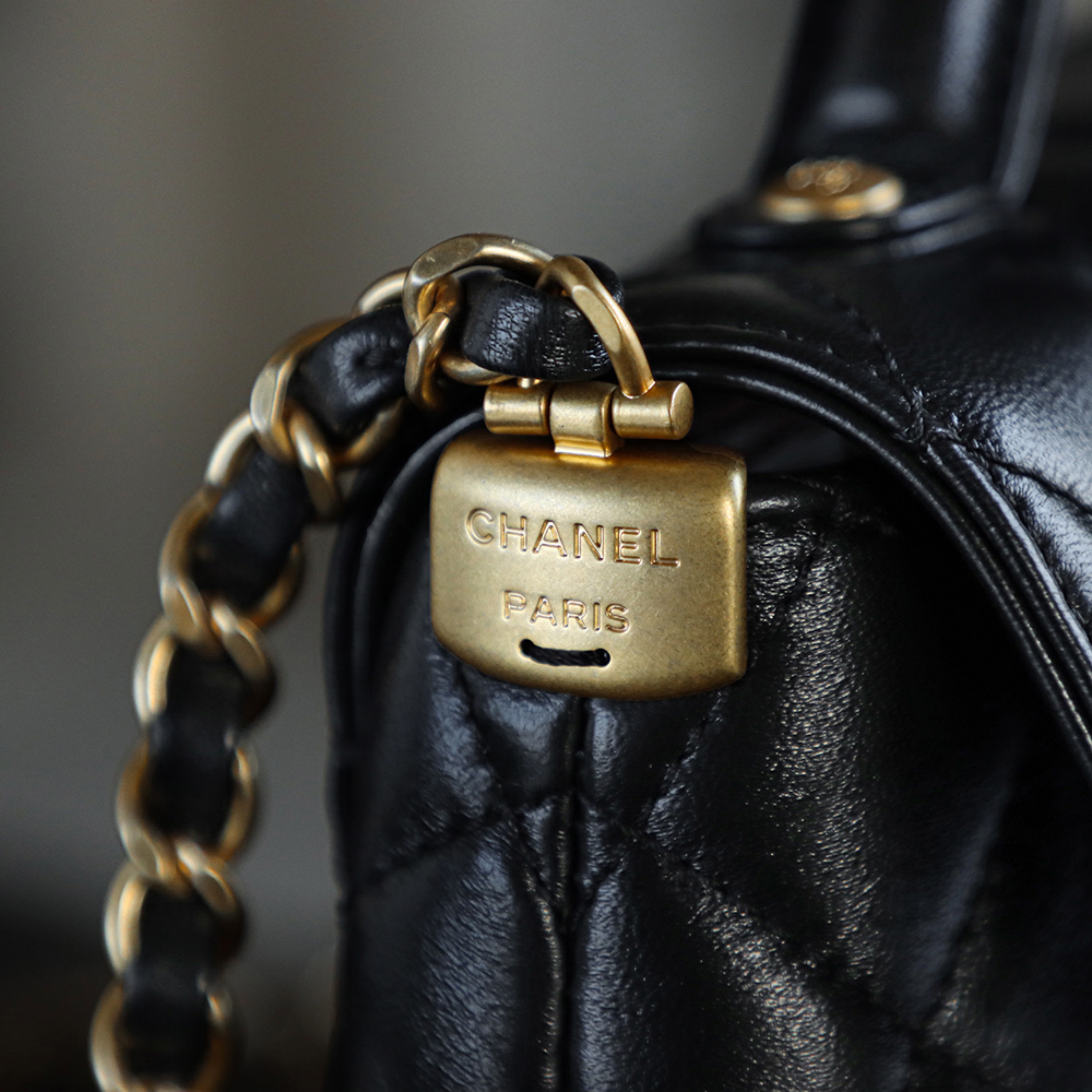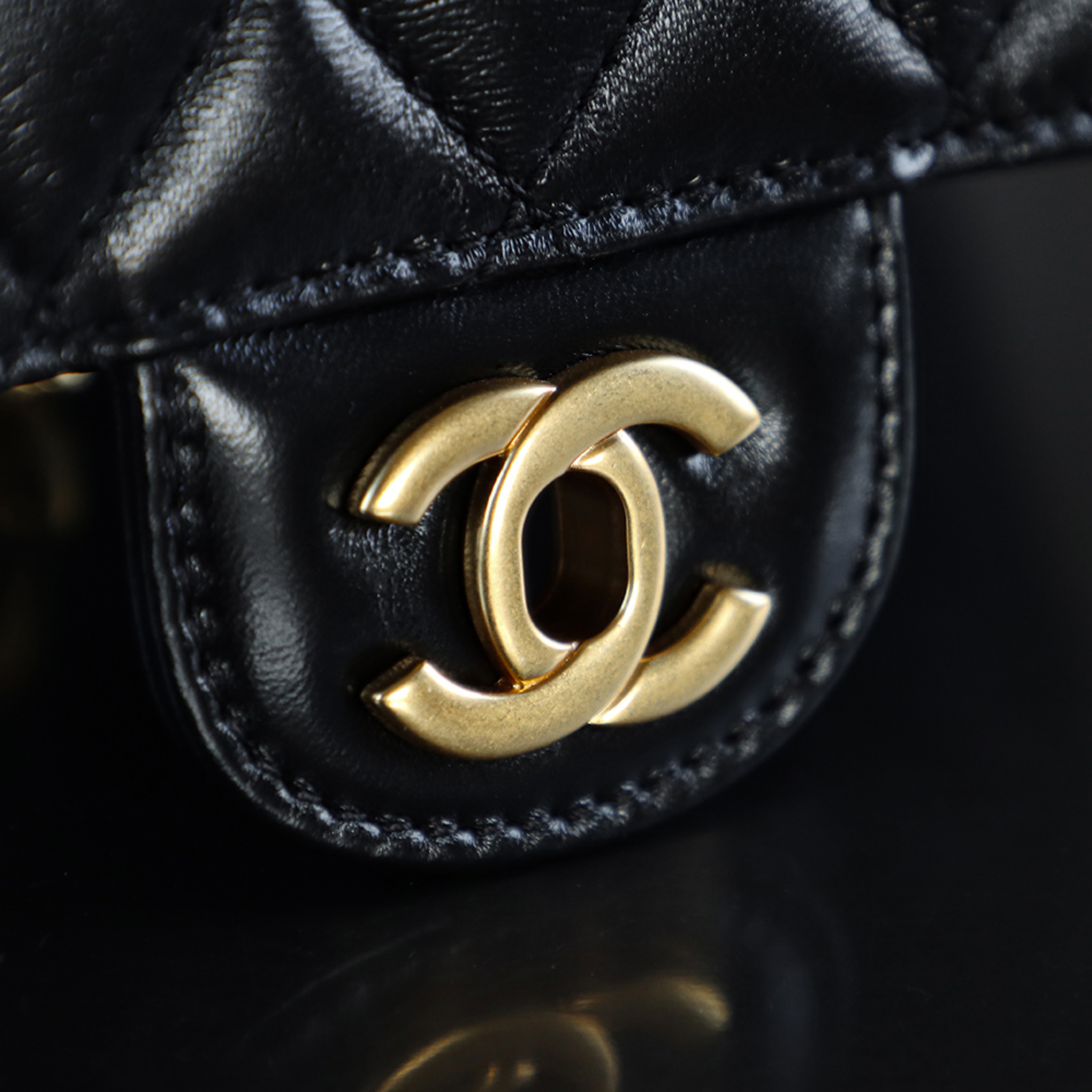 Crafted from the finest French lambskin, sourced from the same tanneries as CHANEL’s atelier, this leather is celebrated for its ultra-soft, buttery texture and subtle sheen. The deep black hue enhances its timeless appeal, ensuring effortless pairing with any ensemble.