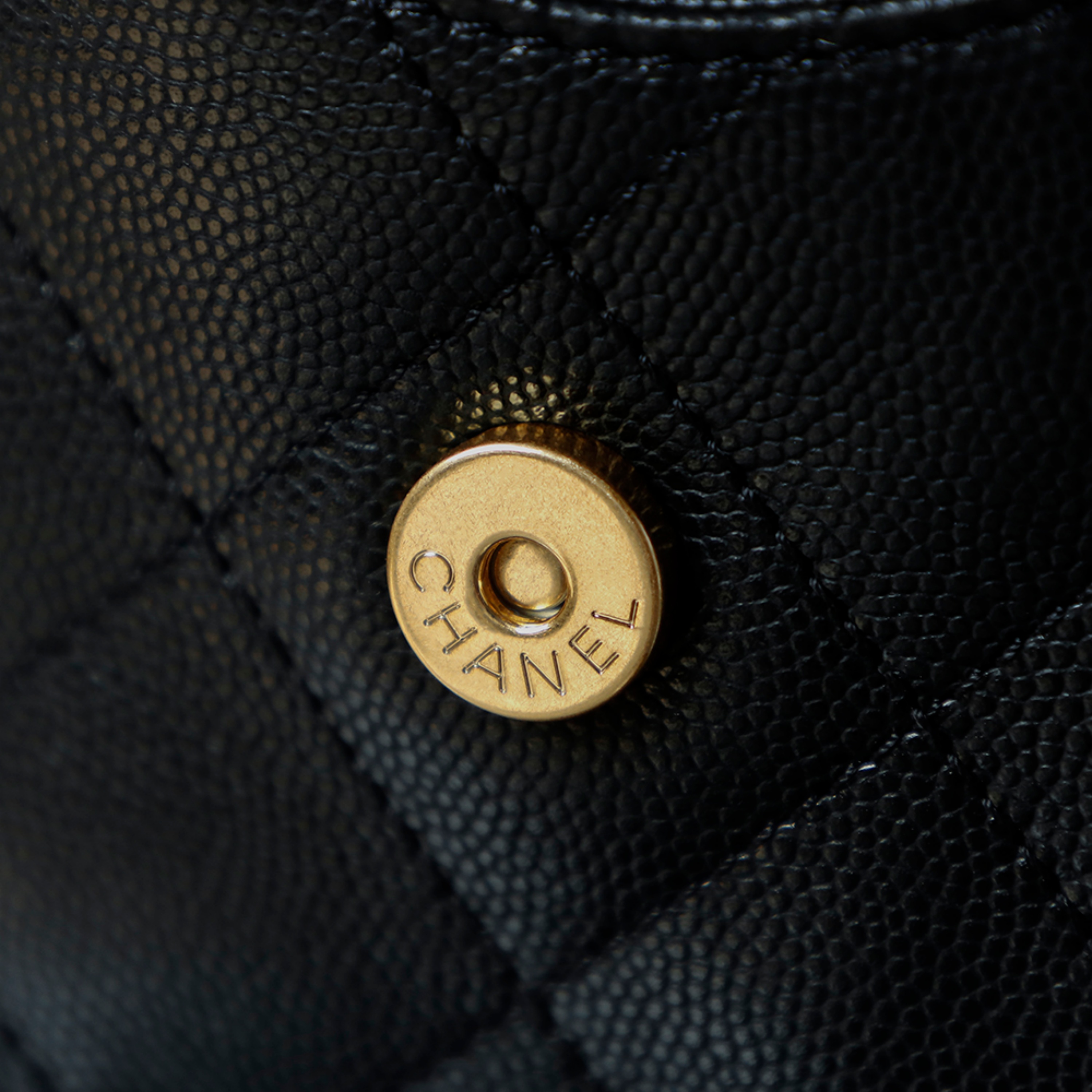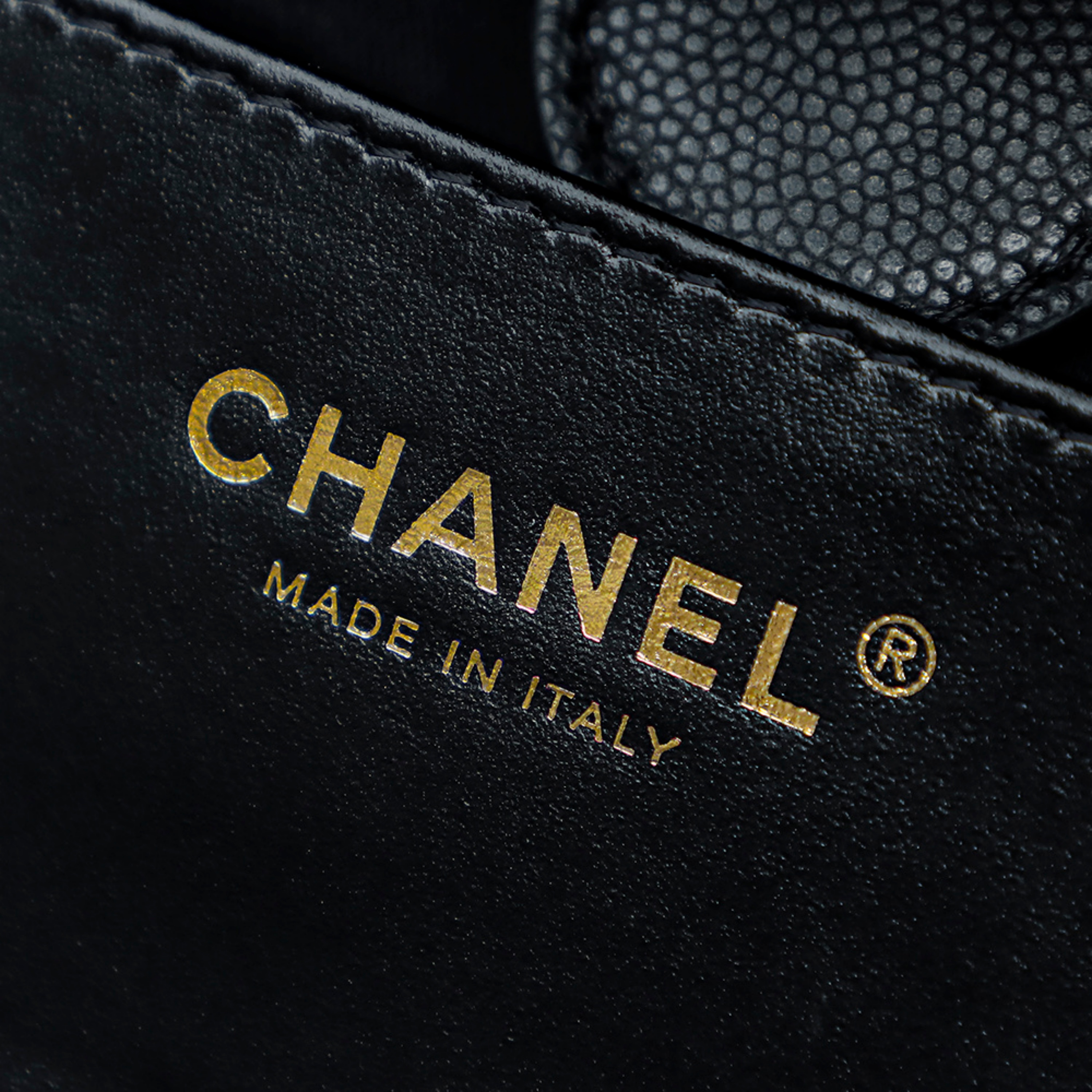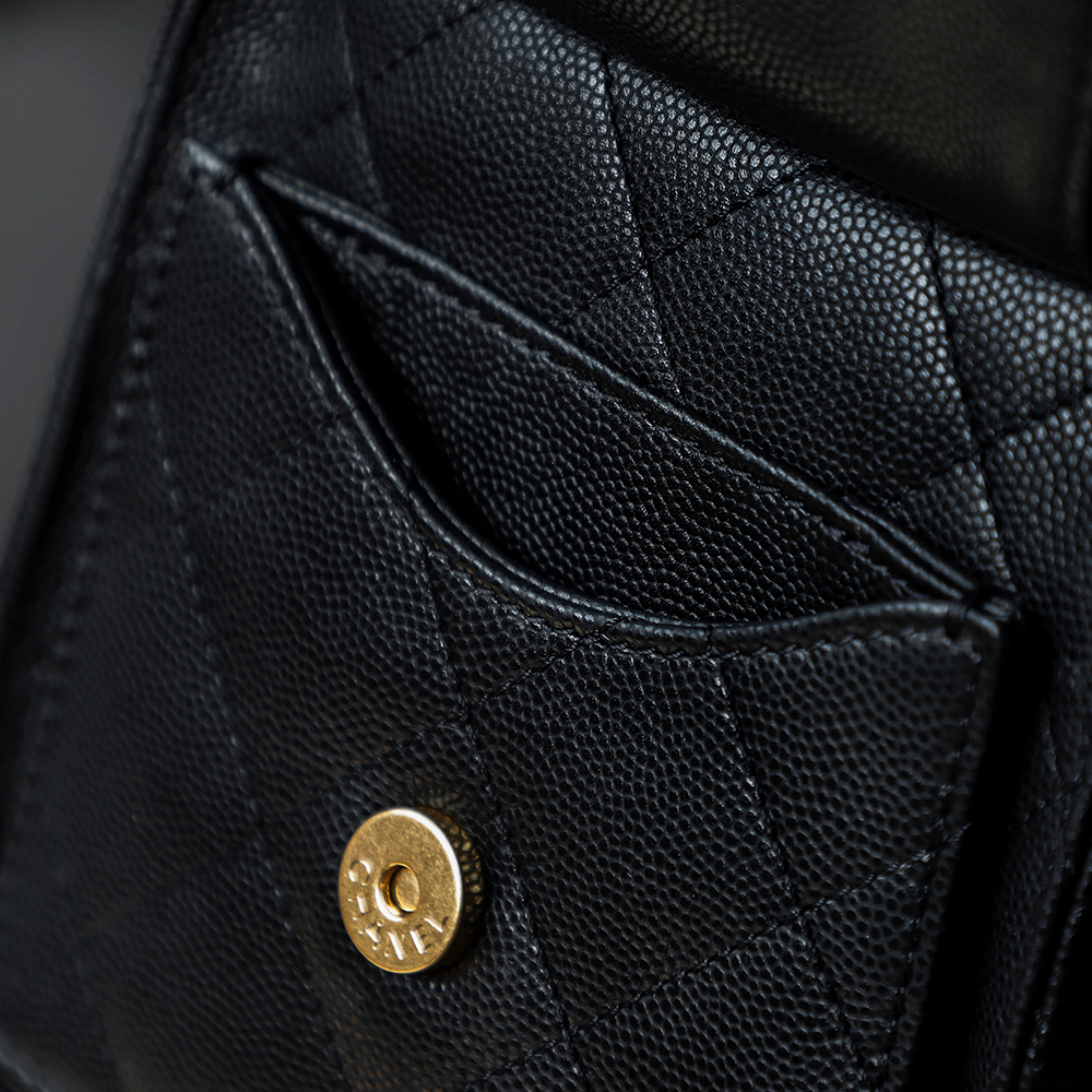 Crafted from the finest waxed calfskin, sourced from the same tanneries trusted by Chanel, this leather boasts a rich, lustrous finish that deepens with wear. Its water-resistant and durable nature ensures longevity, while the deep black hue exudes sophistication and versatility.