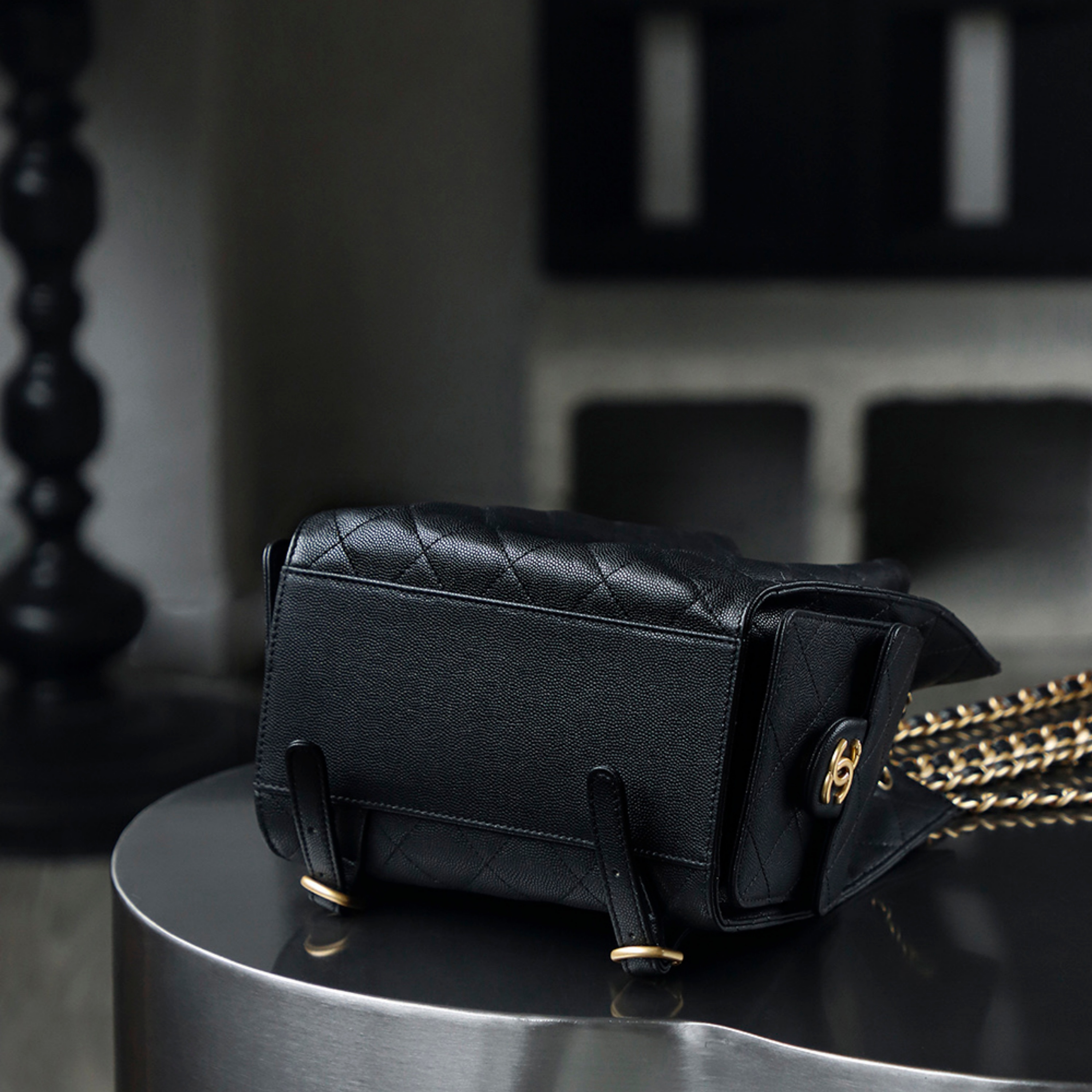 Design Features: Dual adjustable leather straps, magnetic flap closure, iconic quilted stitching, and a structured yet lightweight build