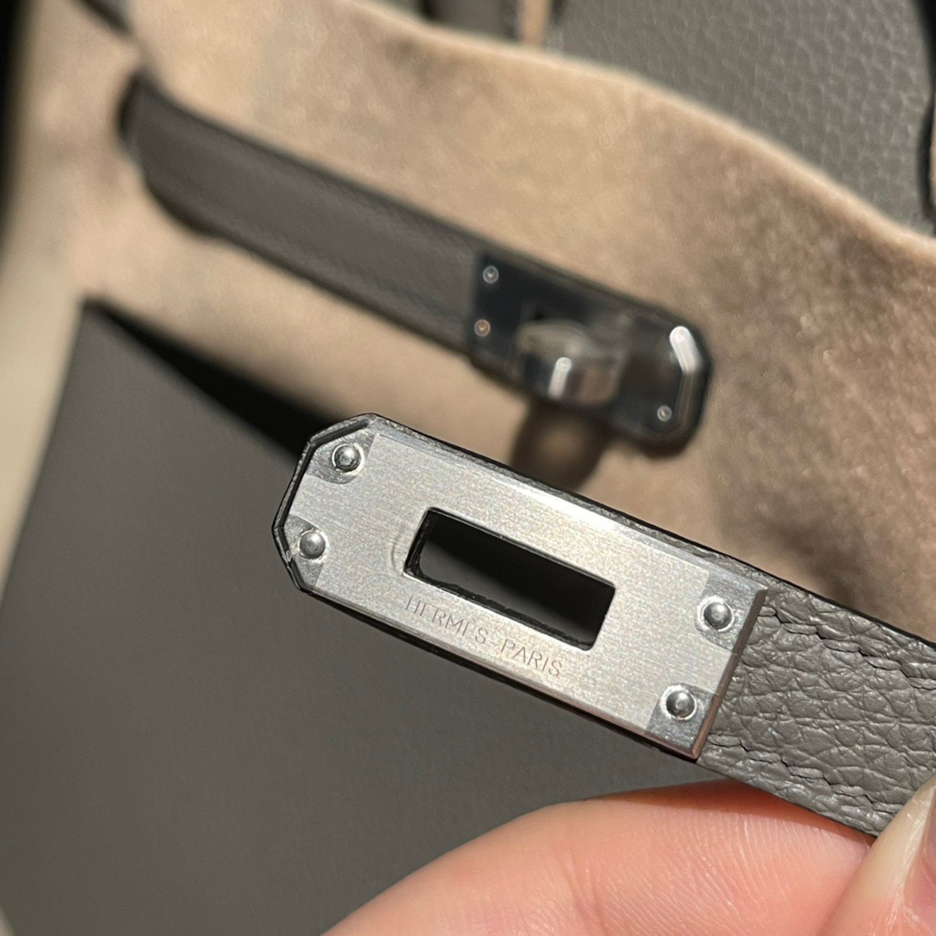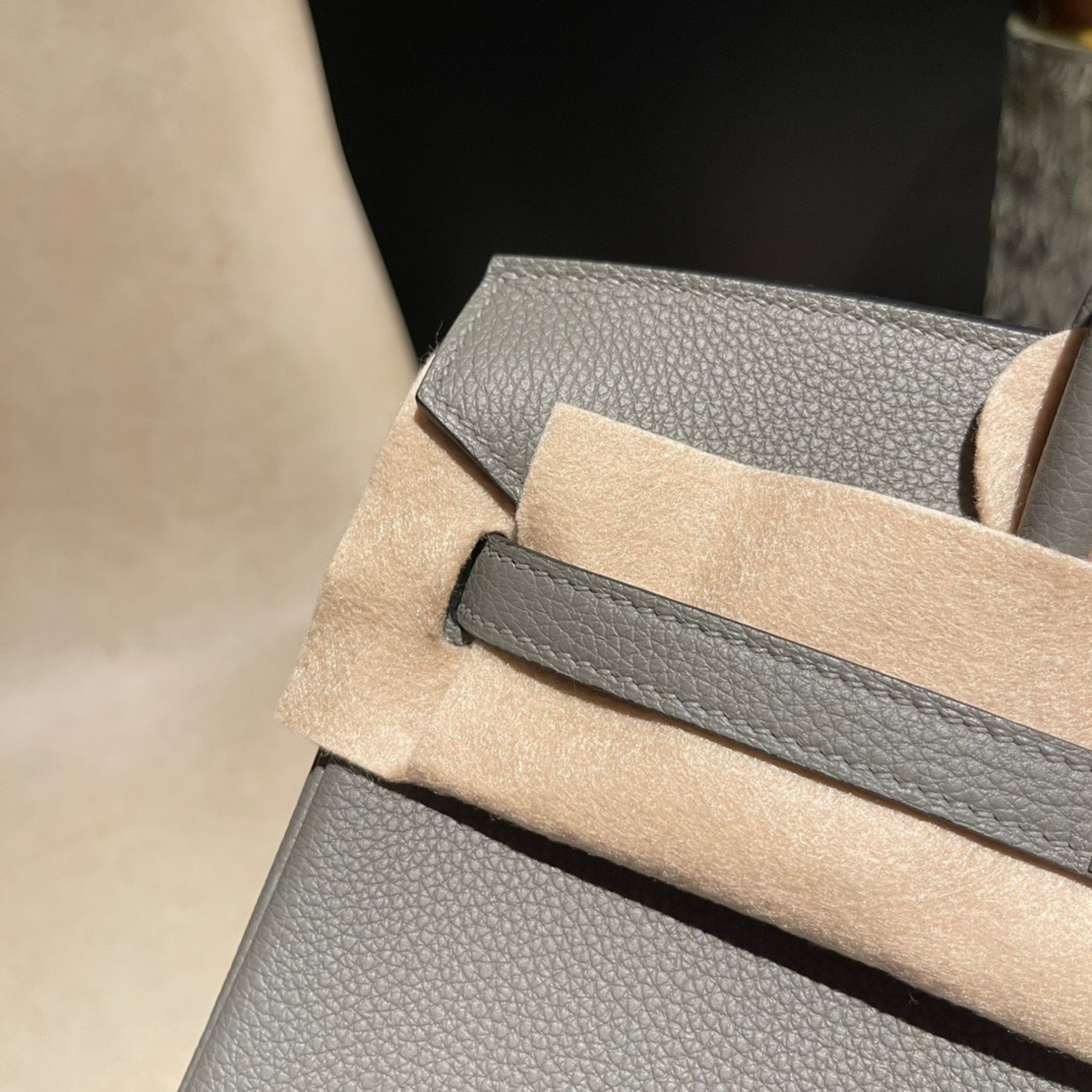 - Texture & Durability: Sourced from premium calfskin, Togo leather is celebrated for its soft yet durable texture, pronounced grain, and resistance to scratches. Its slightly pebbled surface adds depth to the elegant Raincloud Grey hue, which shifts subtly in different lights.