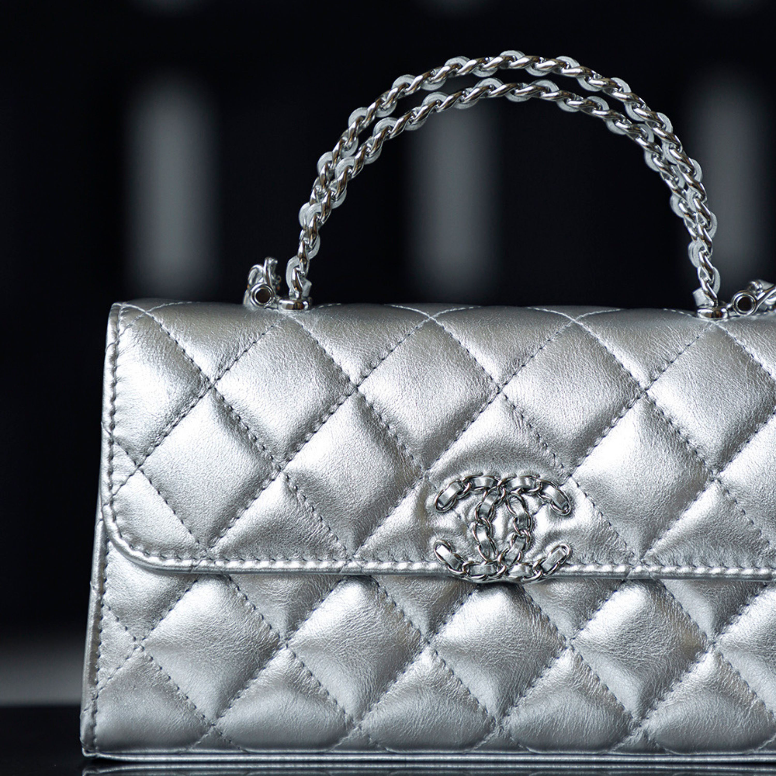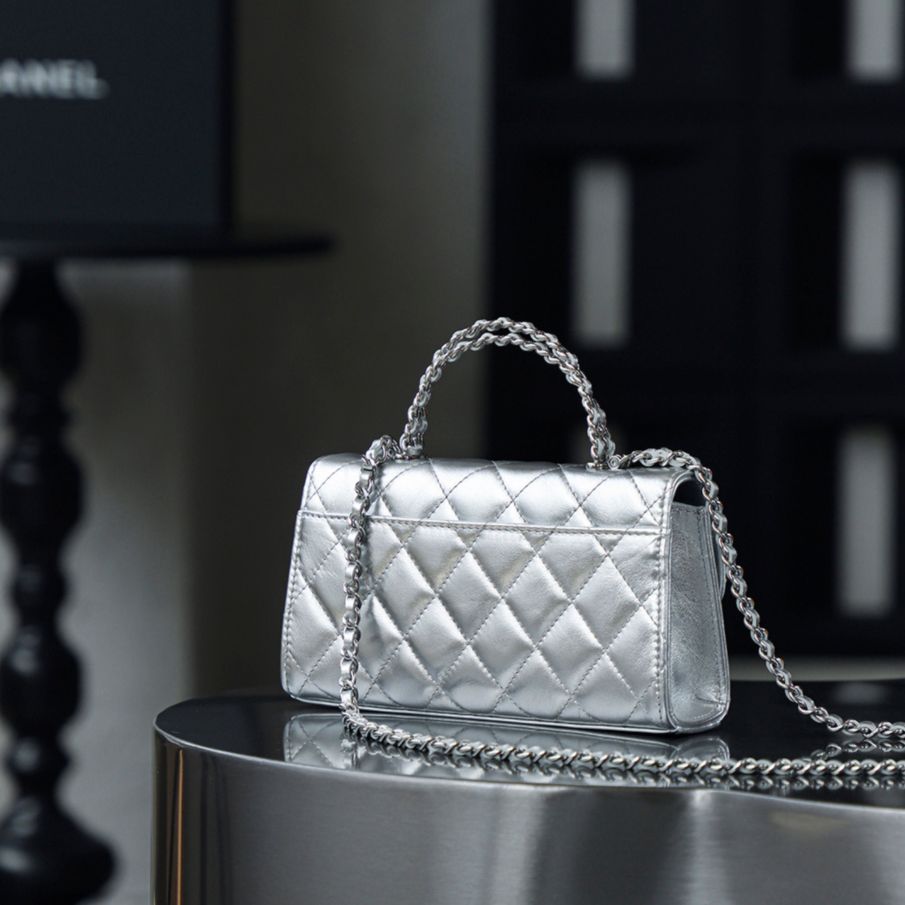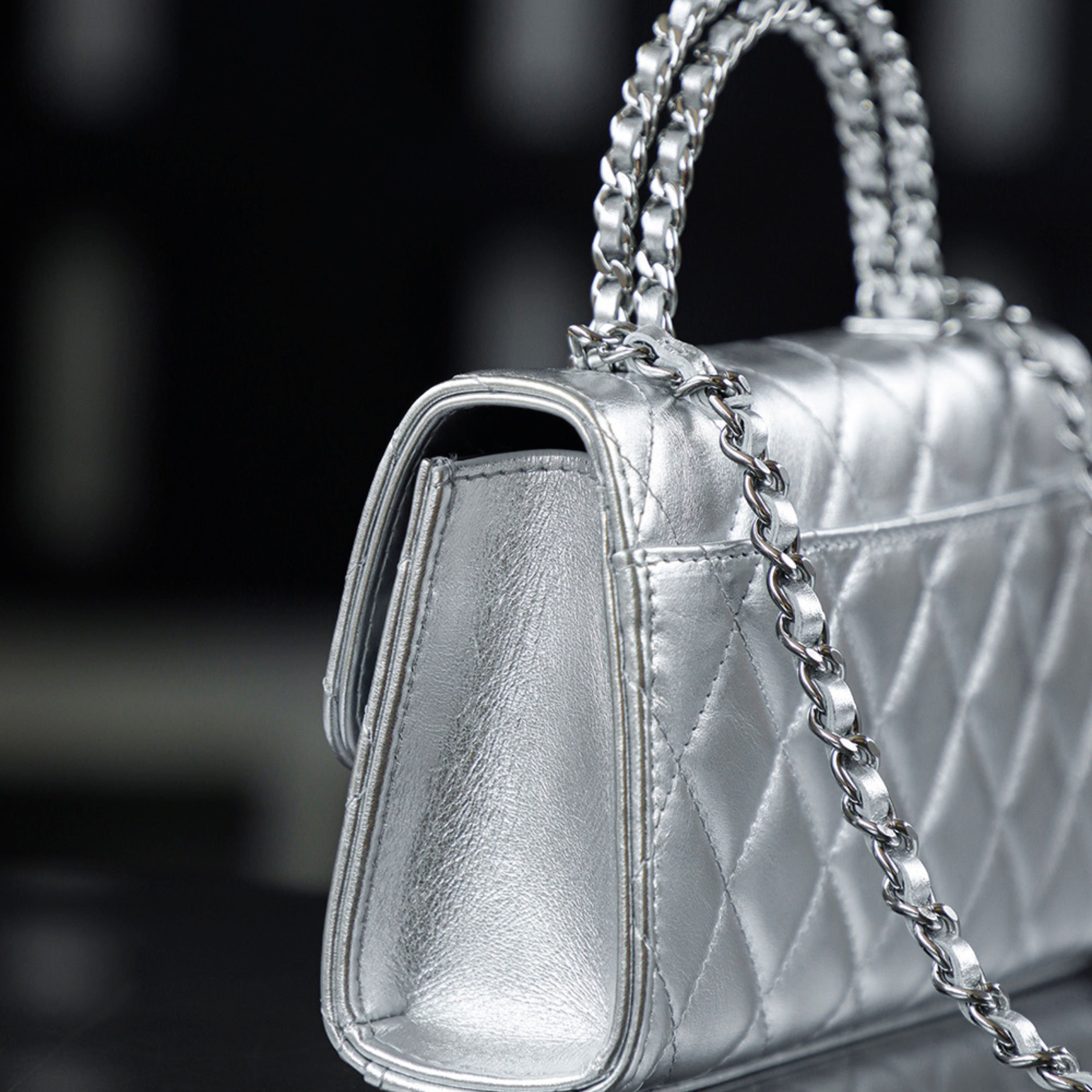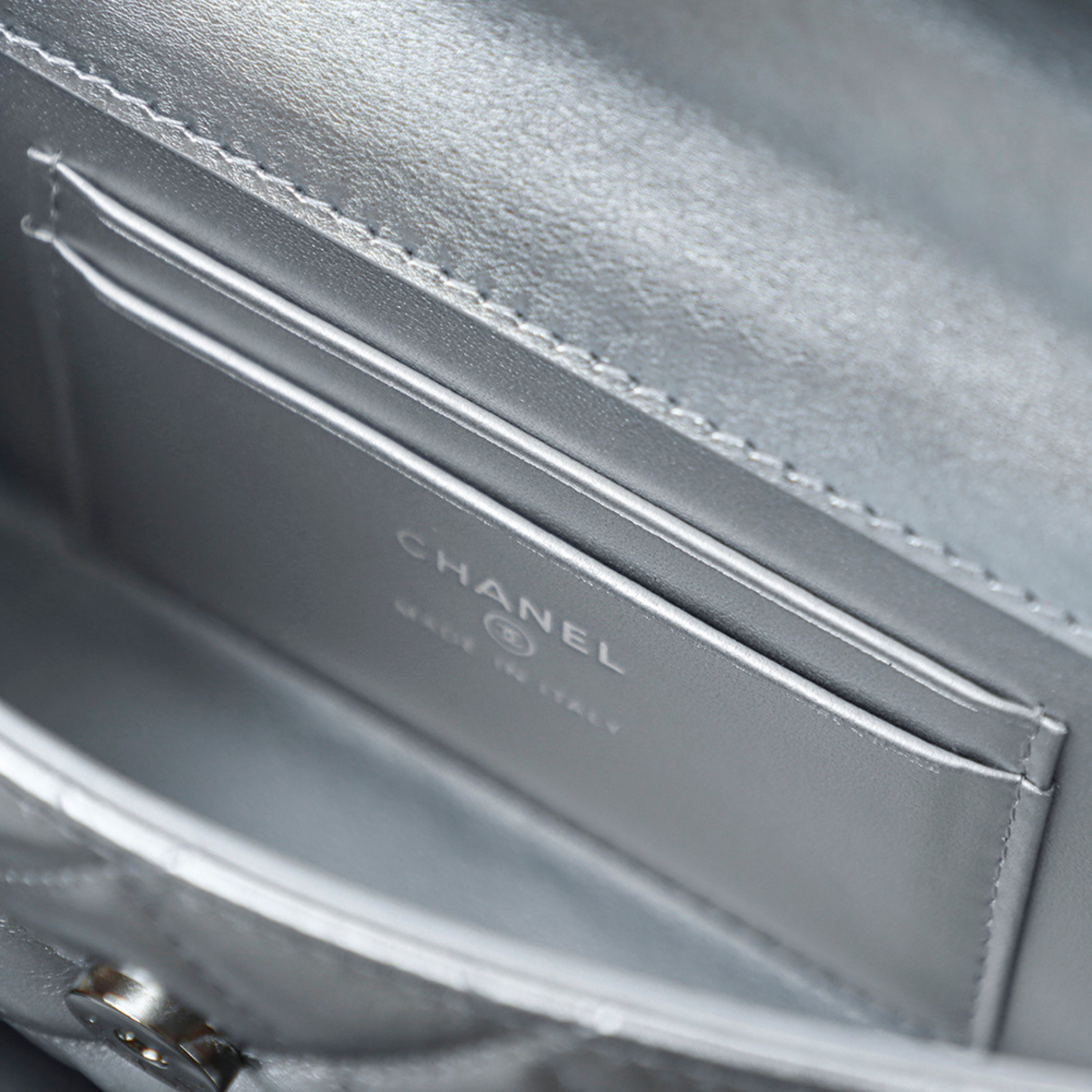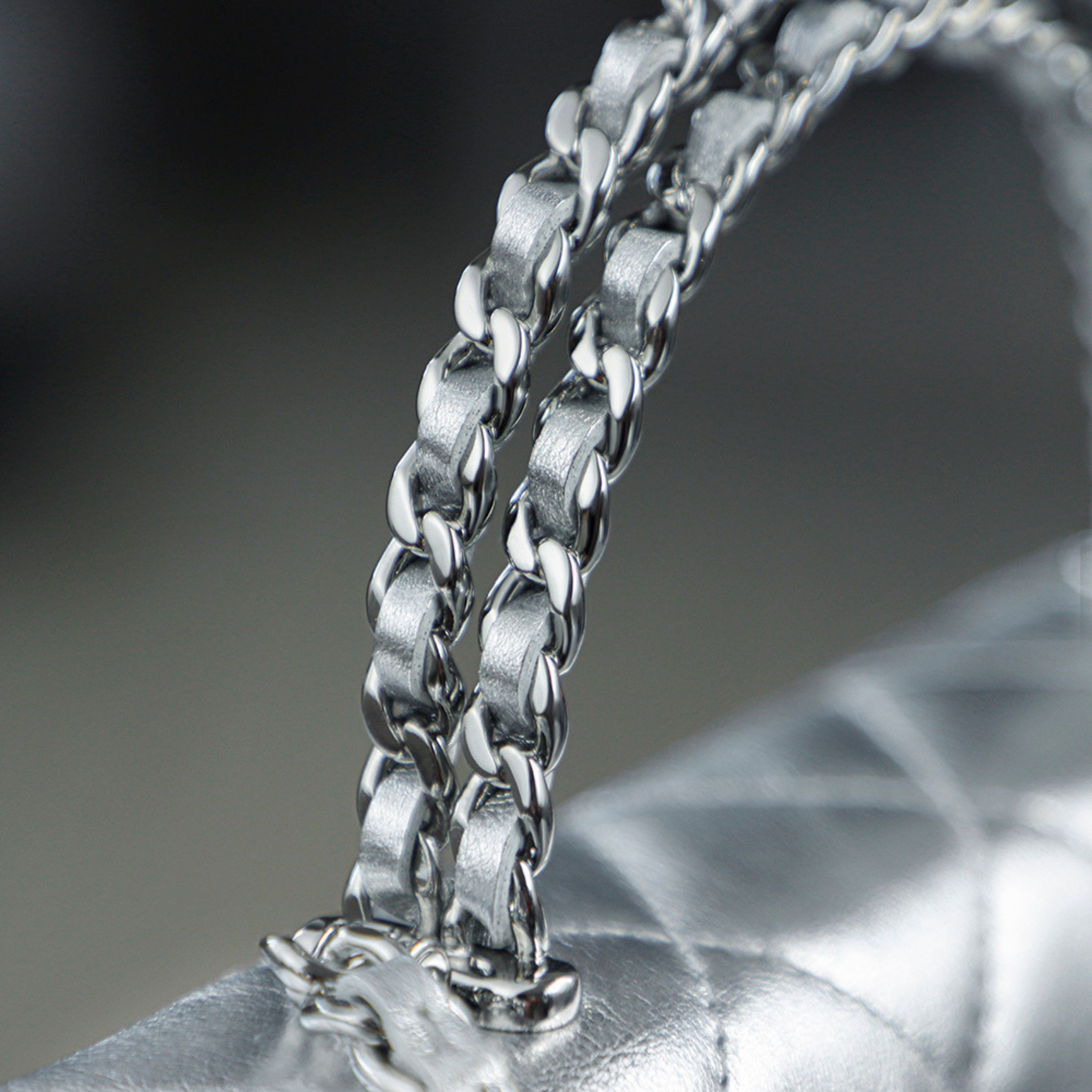 - Leather: Expertly selected quilted calfskin leather, renowned for its soft texture and durability, with a delicate silver hue that exudes modernity and elegance.