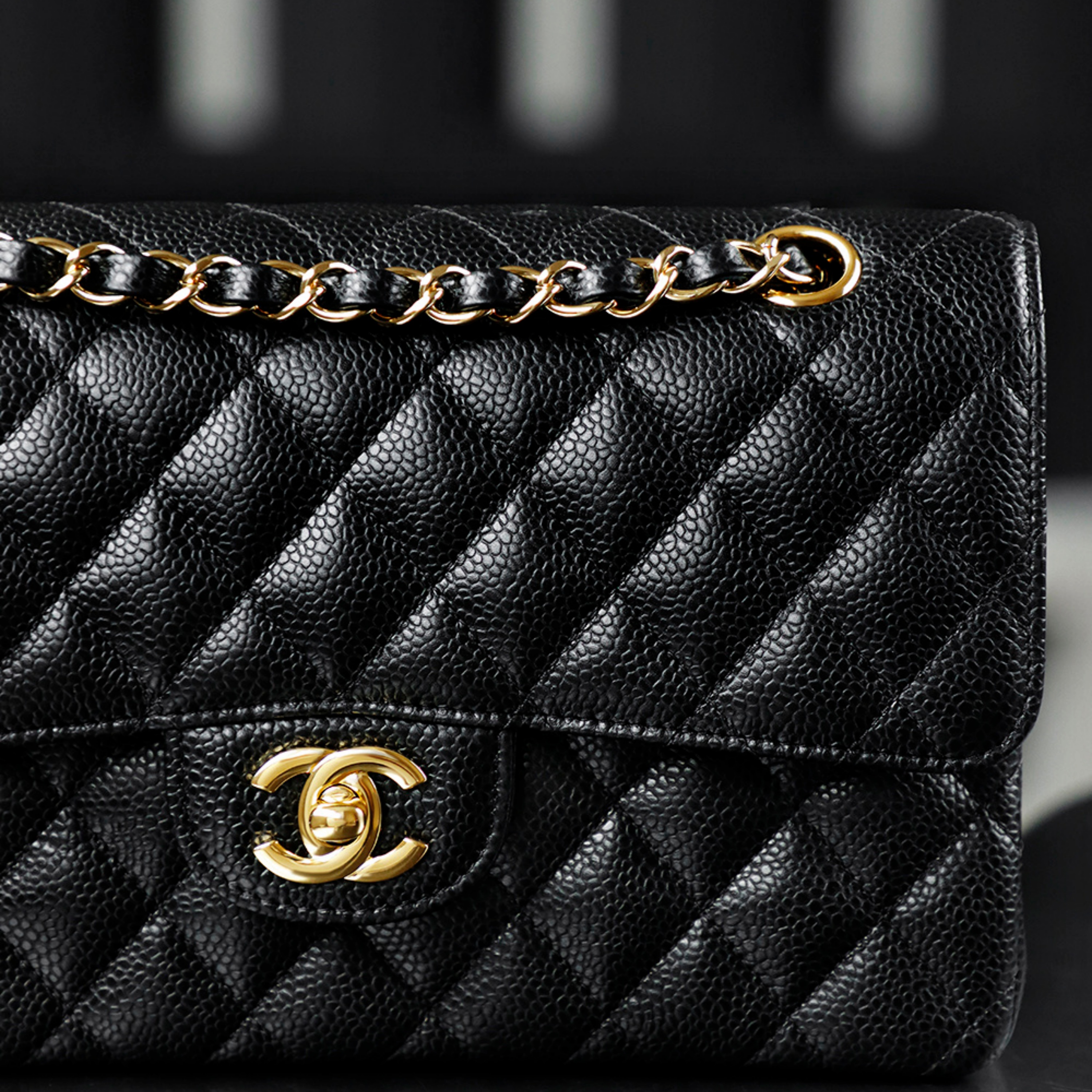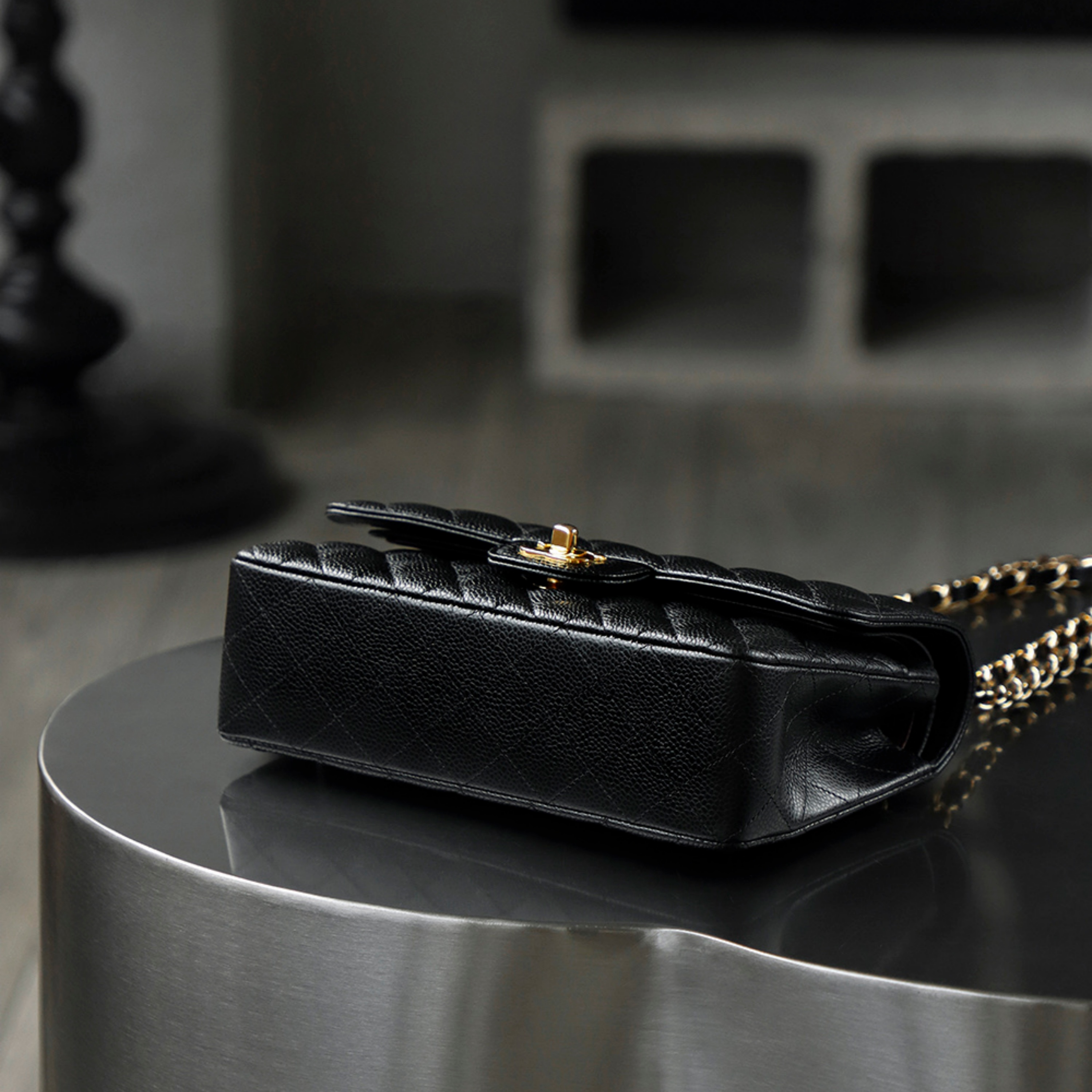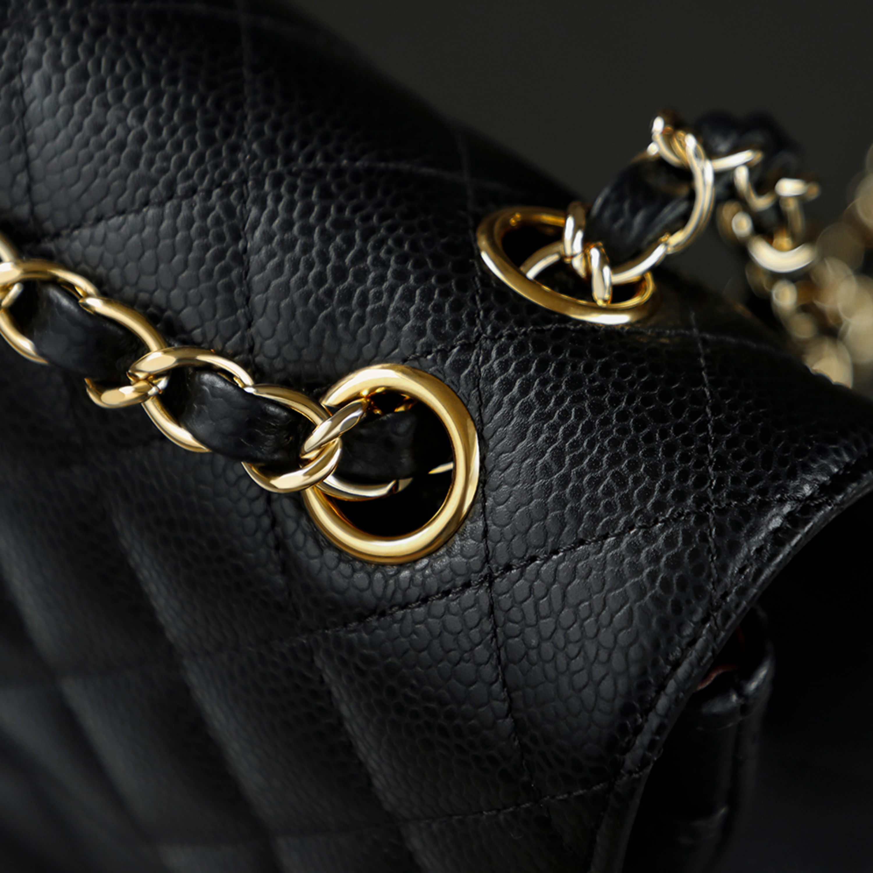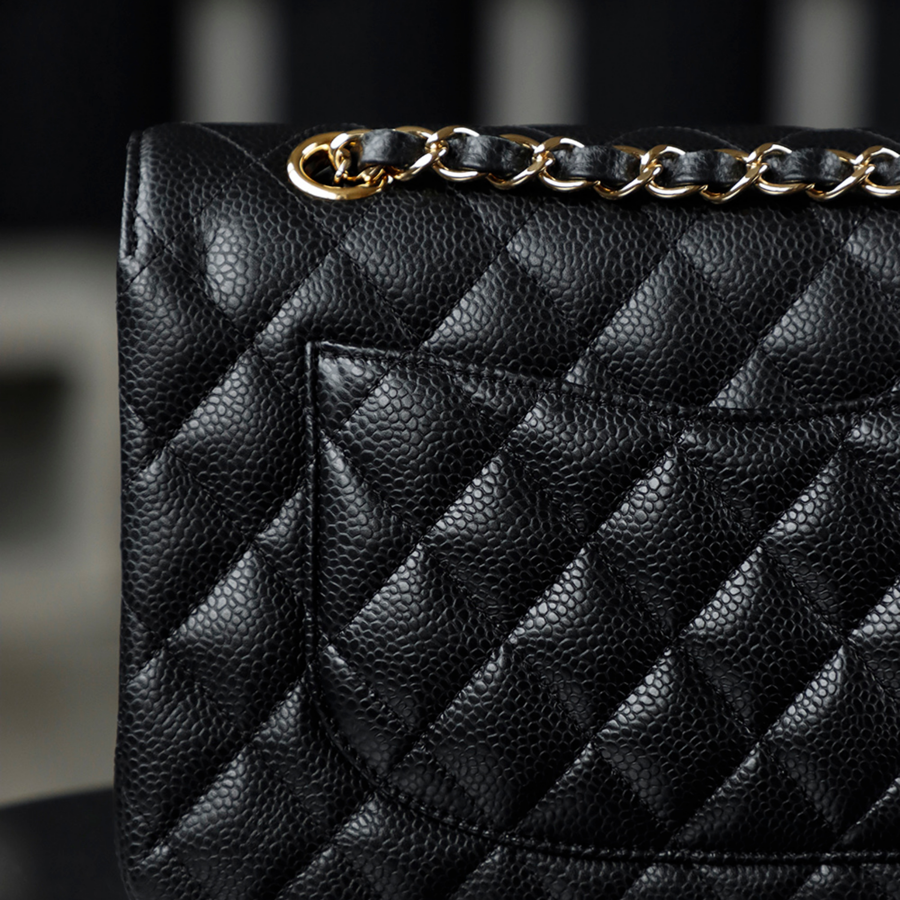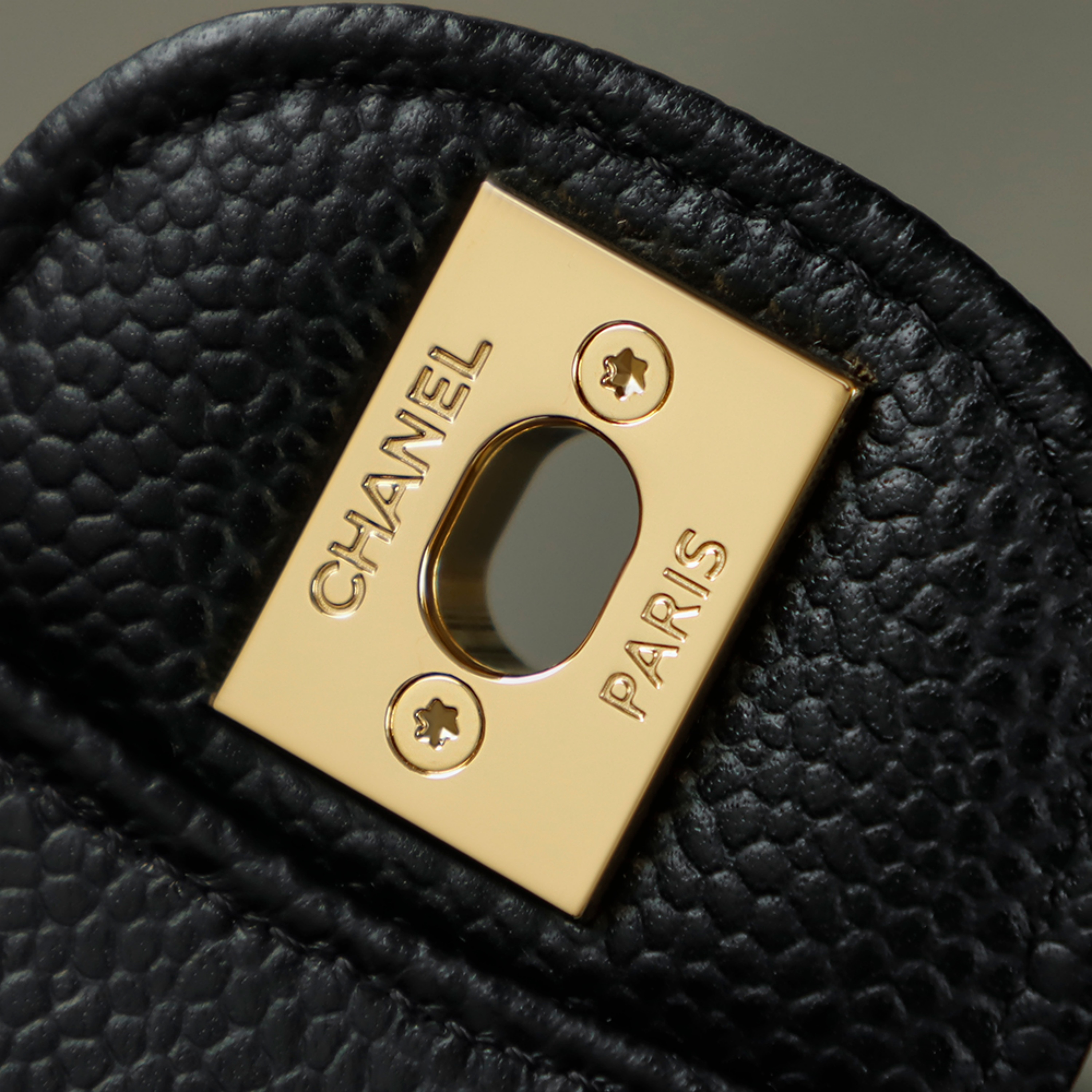 Featuring meticulously cast 24K gold-plated hardware with the iconic interlocking CC turn-lock and chain. Each link of the signature woven chain is carefully assembled and finished with a vintage-inspired patina, ensuring a flawless harmony between brilliance and heritage elegance. The stitching is precisely aligned and hand-finished for seamless durability.