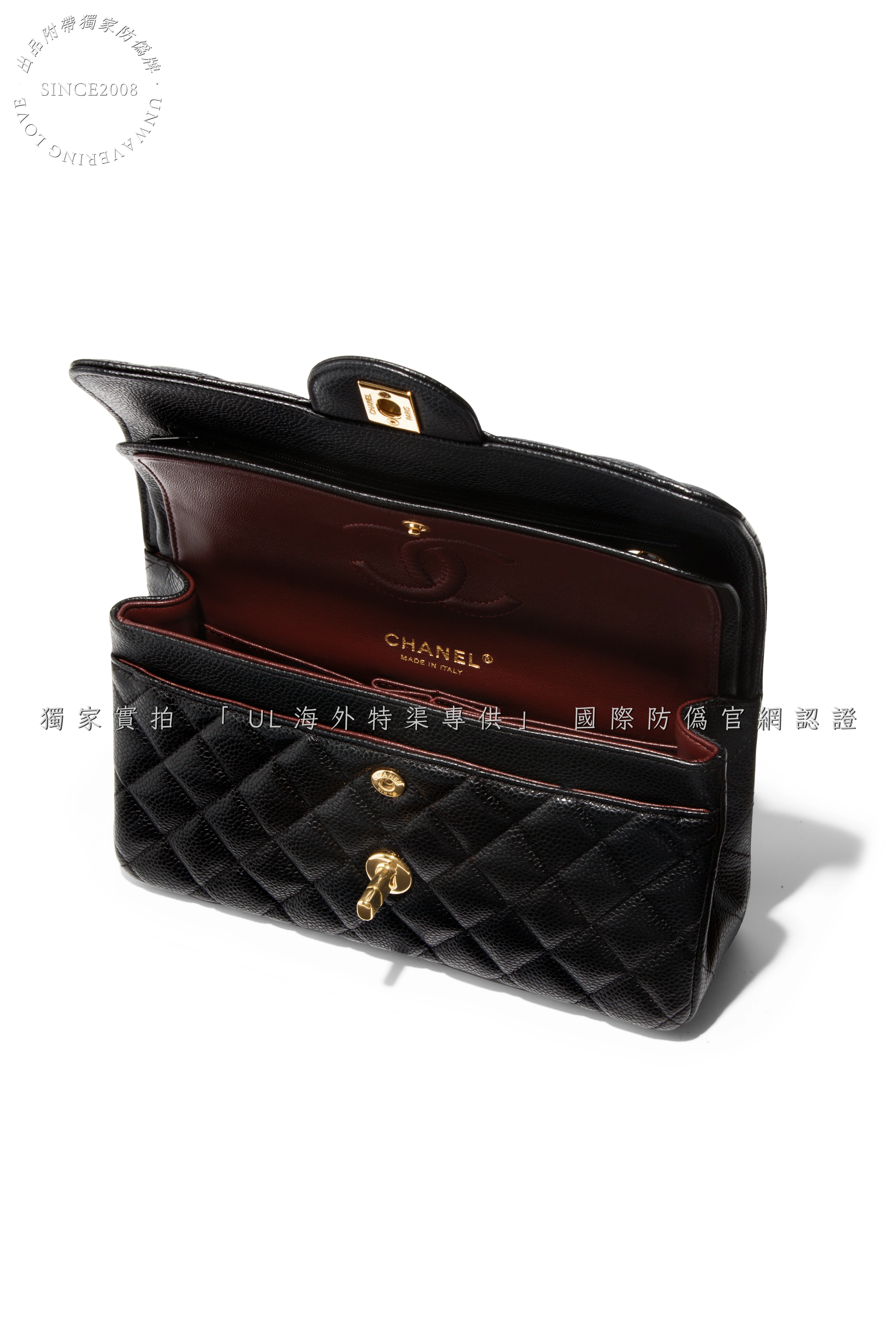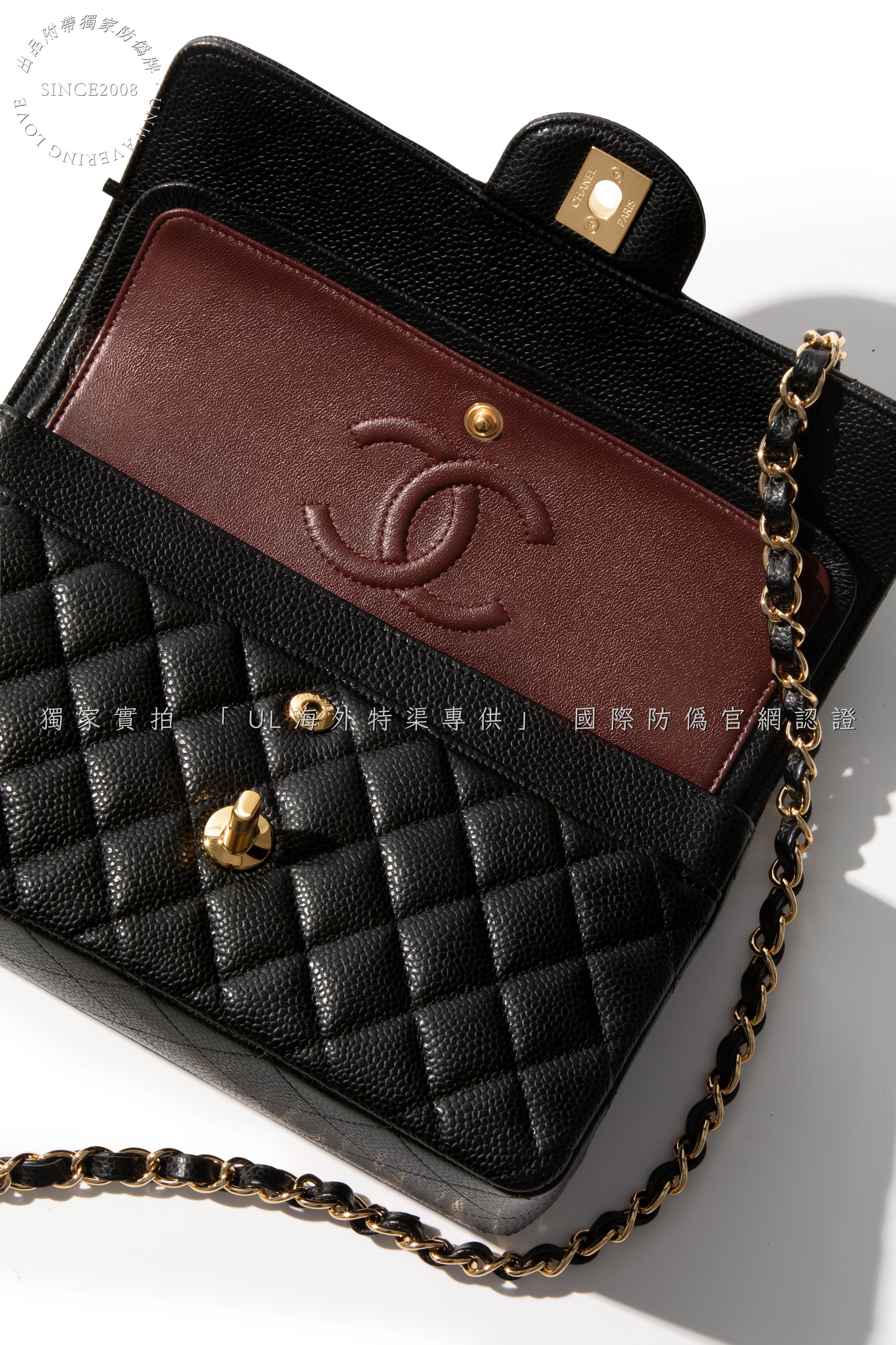 - Structure: Faithfully constructed to match the iconic silhouette—from the precise diamond quilting with consistent puffiness to the aligned interior burgundy fabric lining.