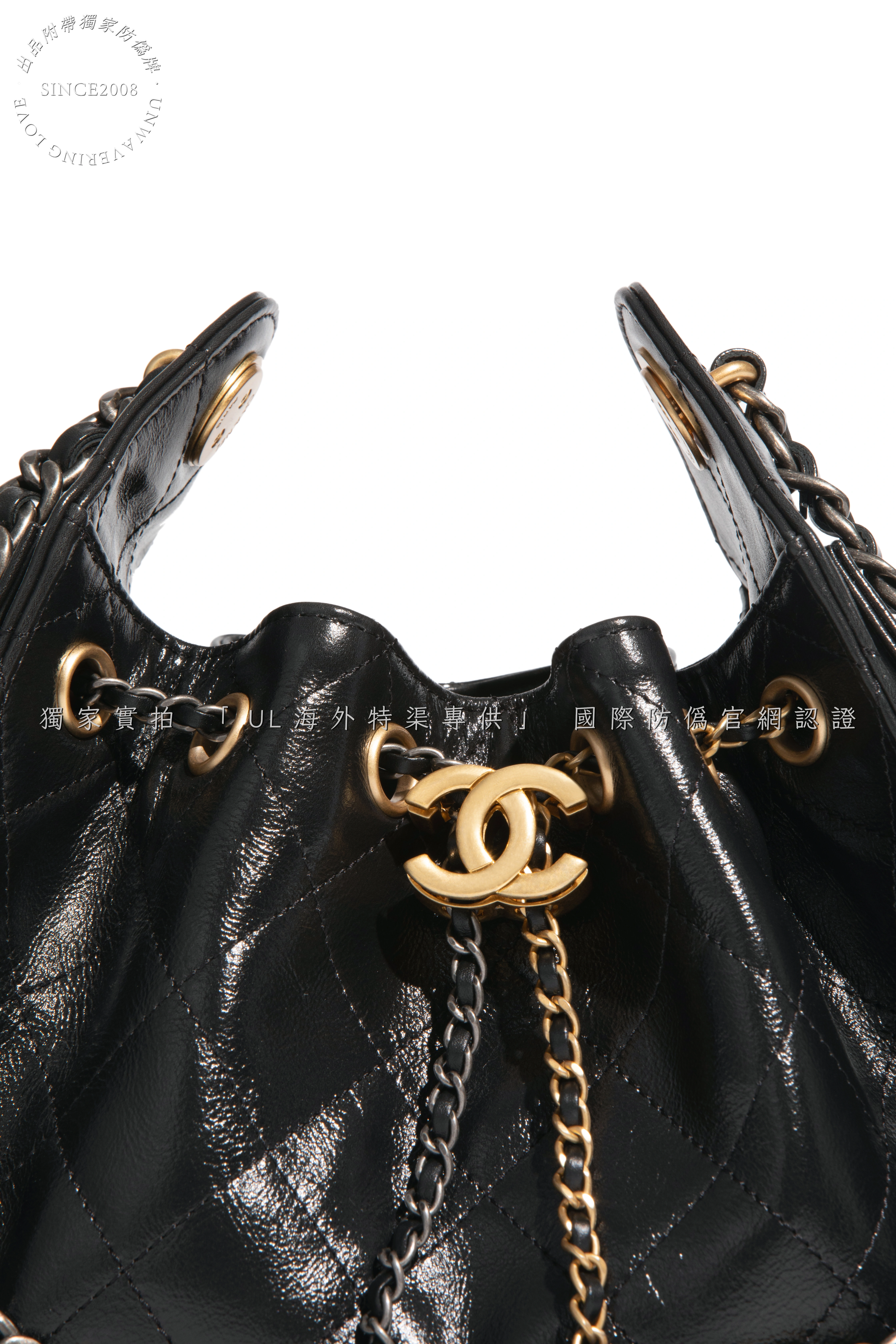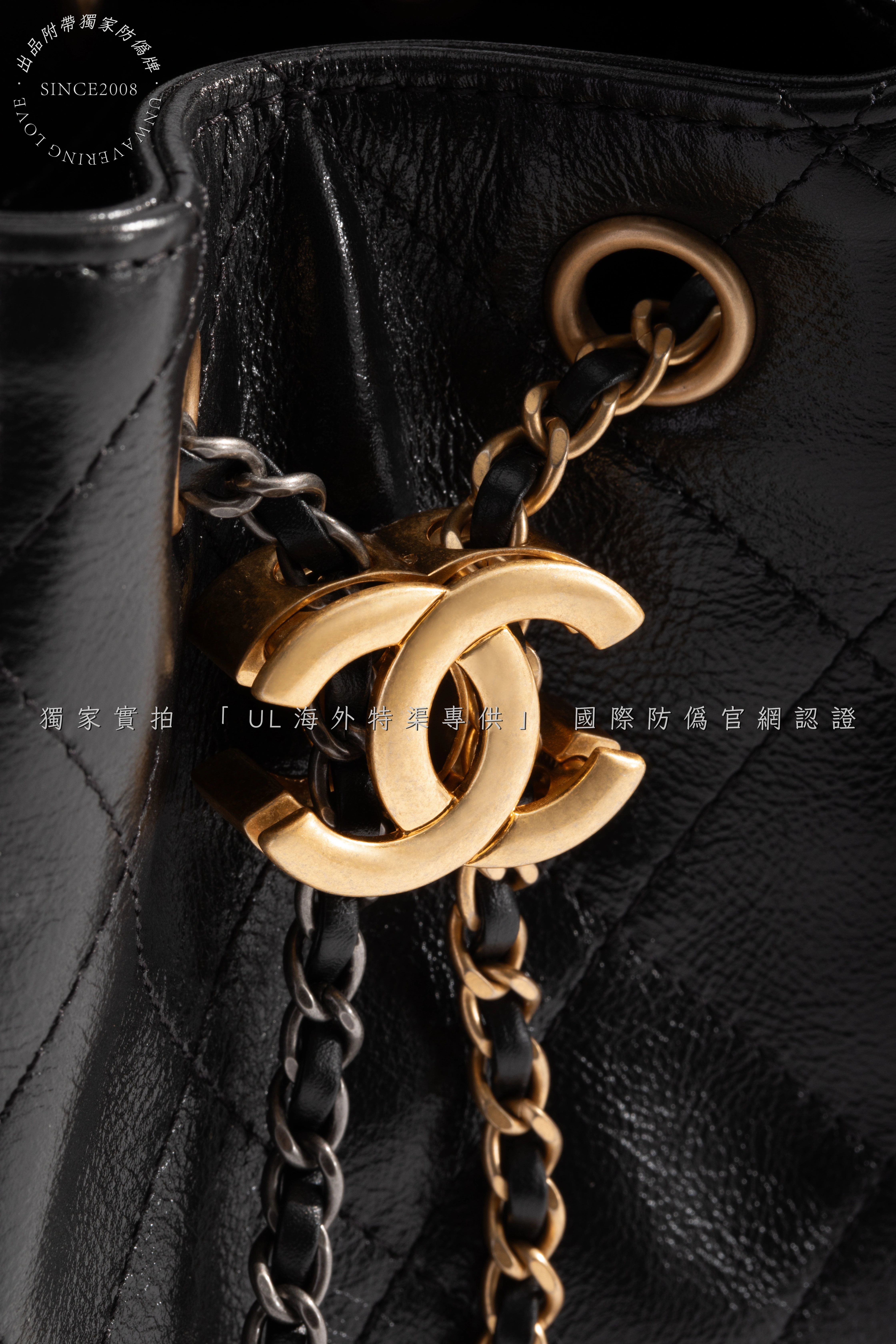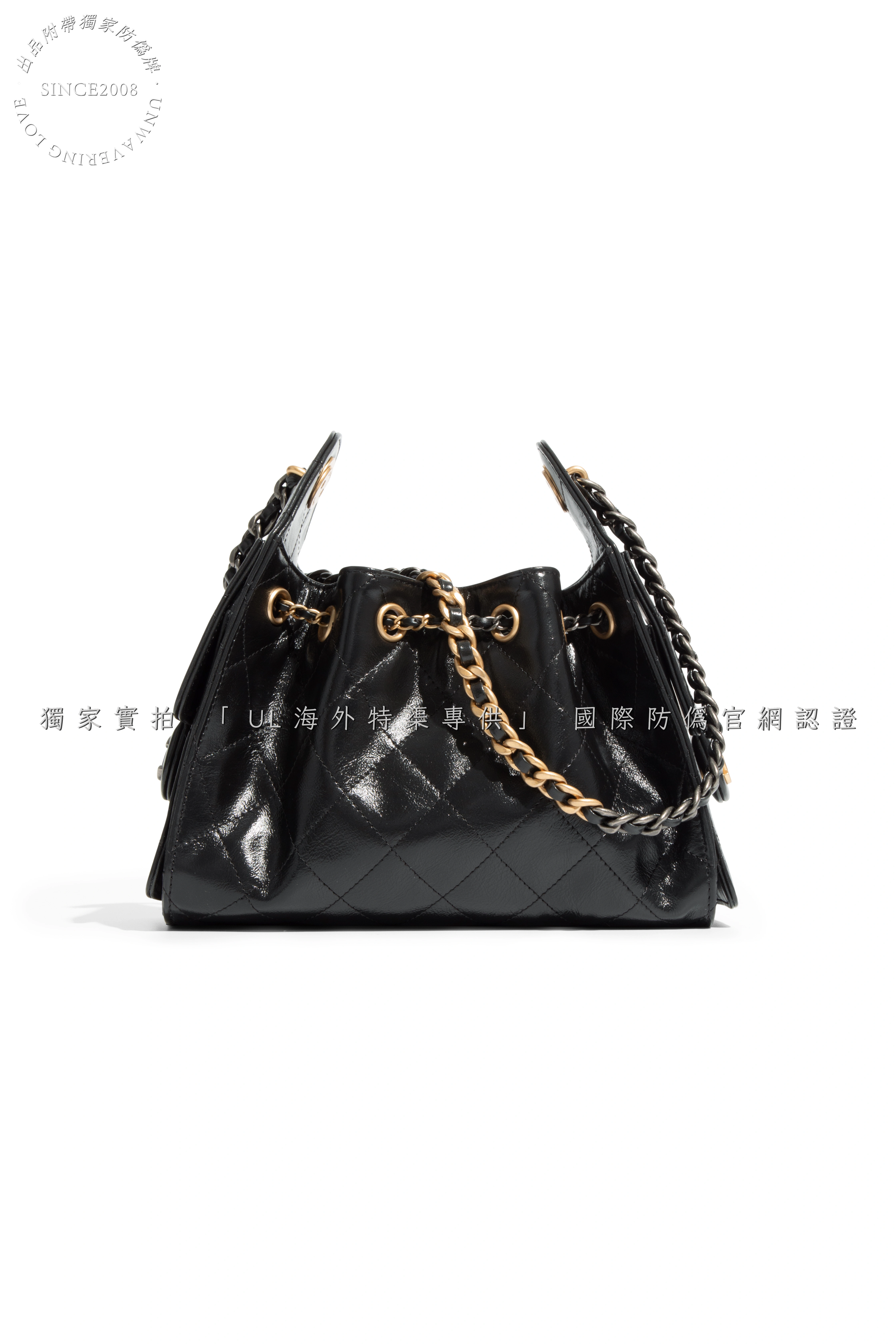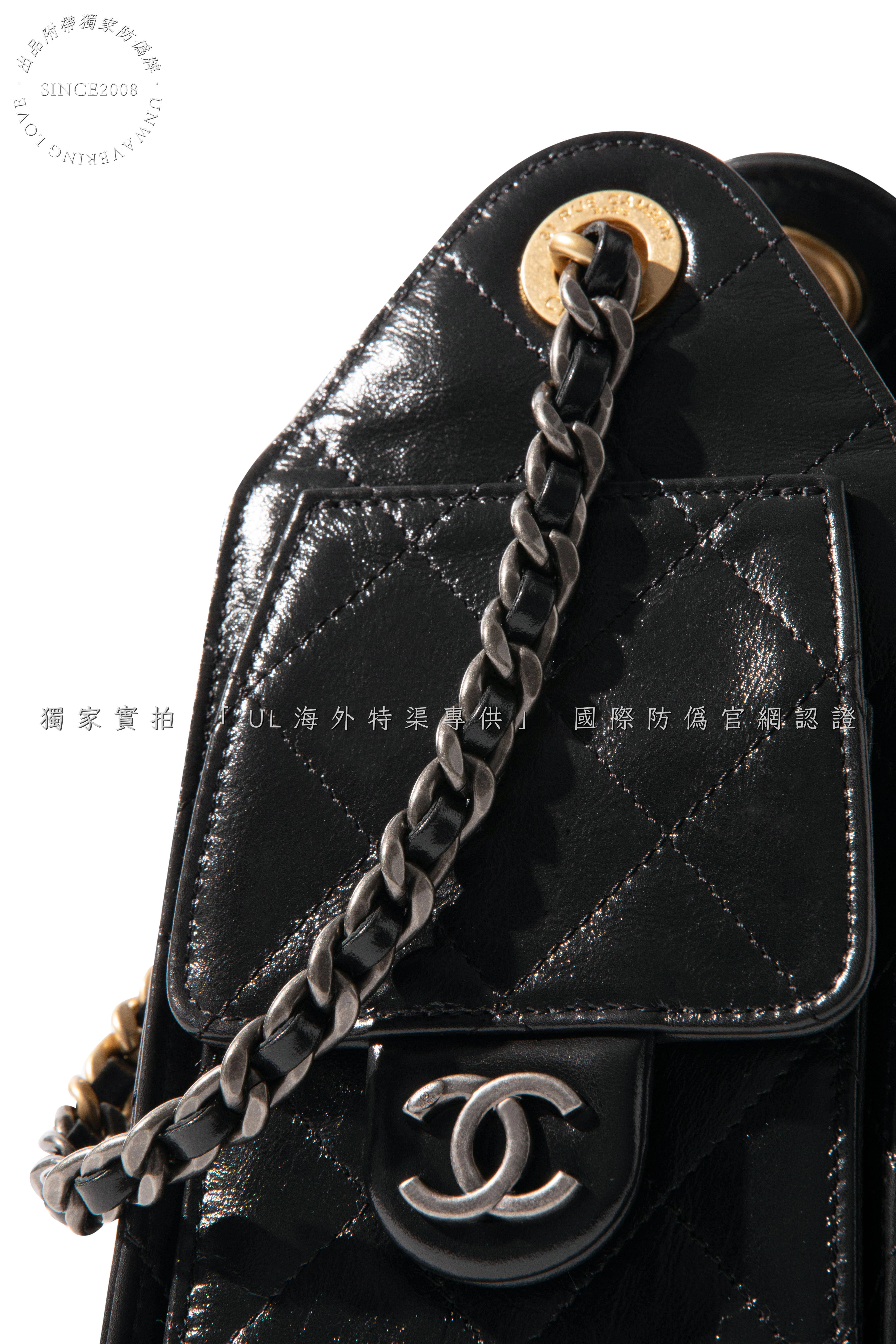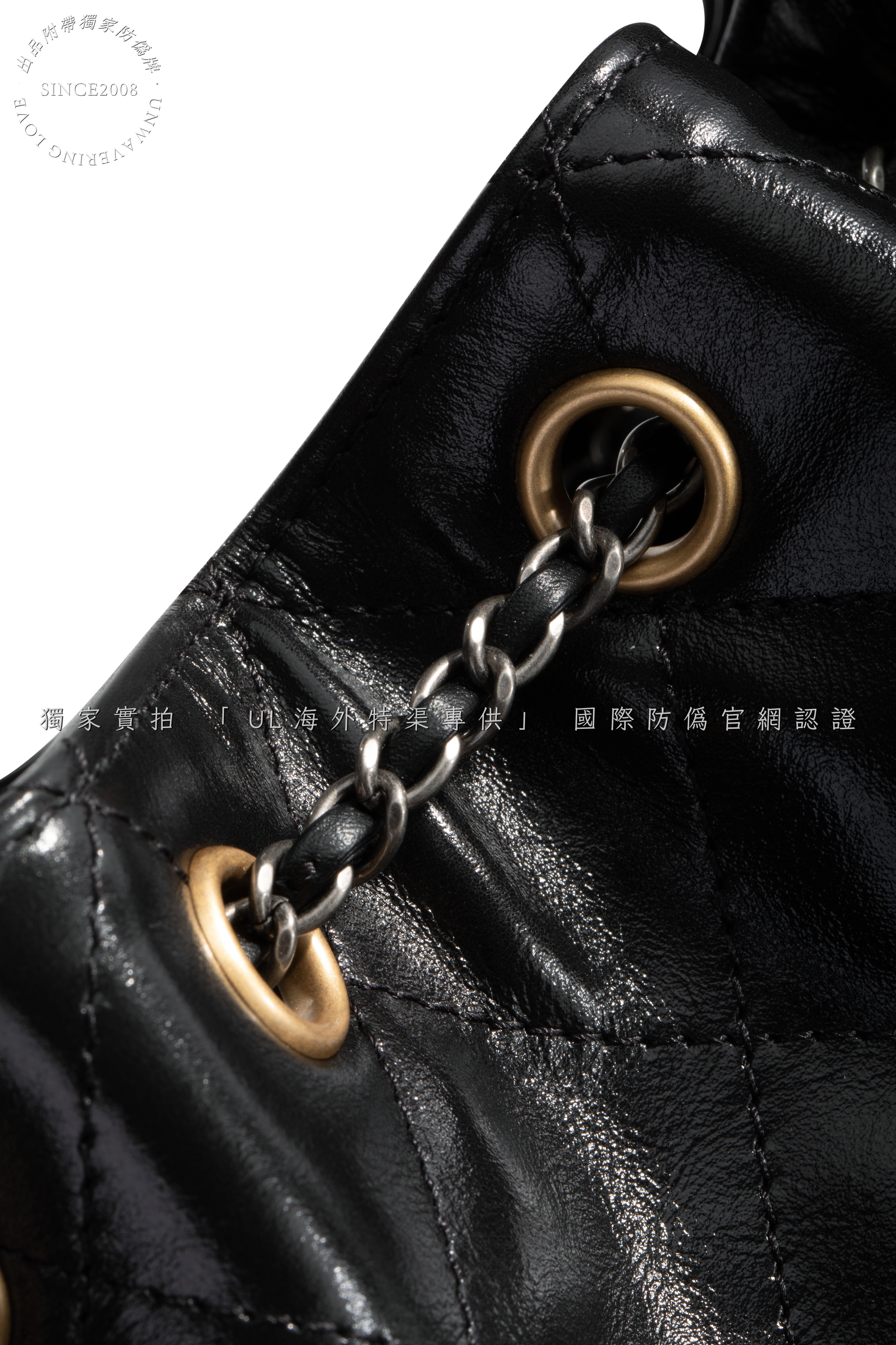 - Hardware: Dual-tone gold and silver electroplated chain, crafted from solid metal with finely engraved logos and smooth, weighty feel.