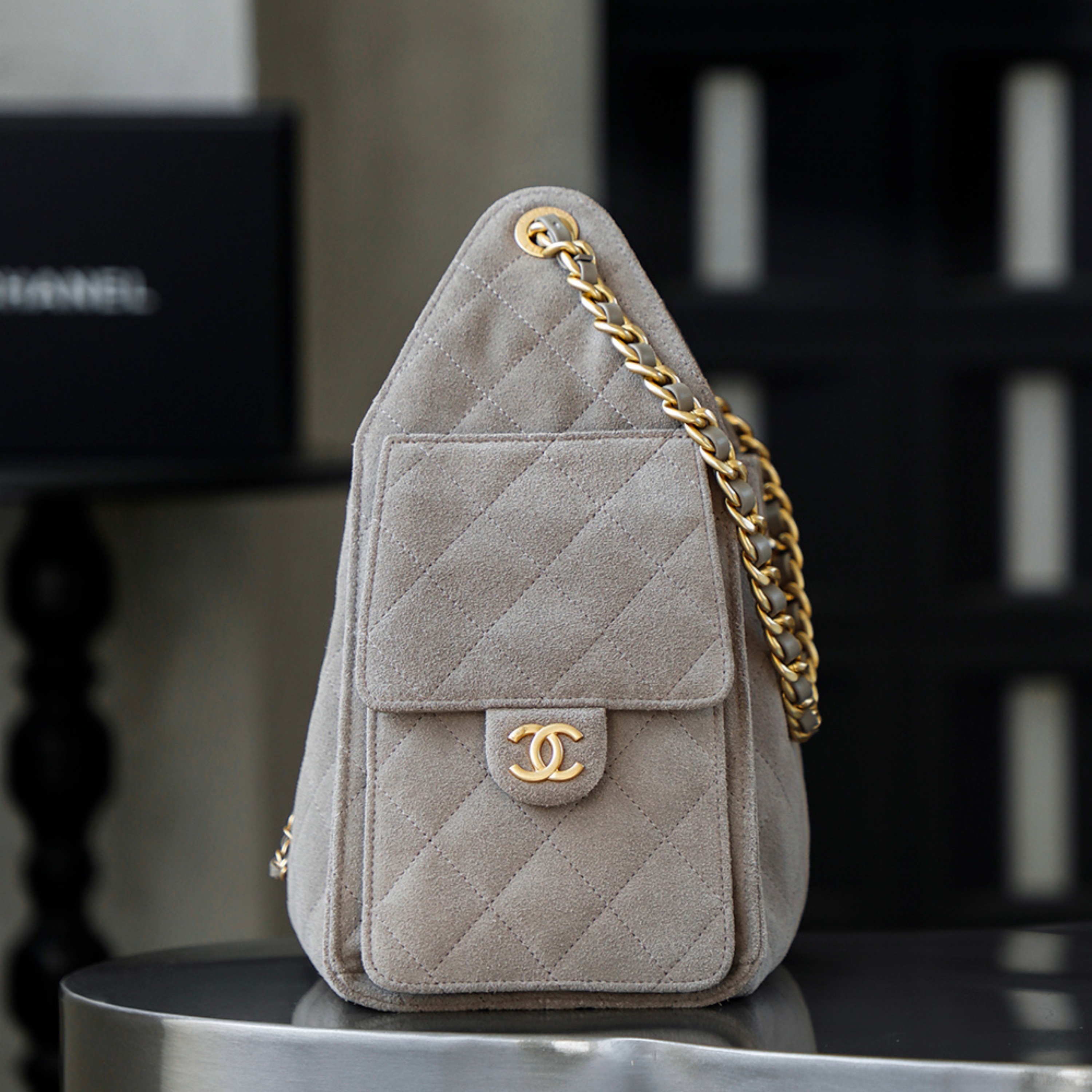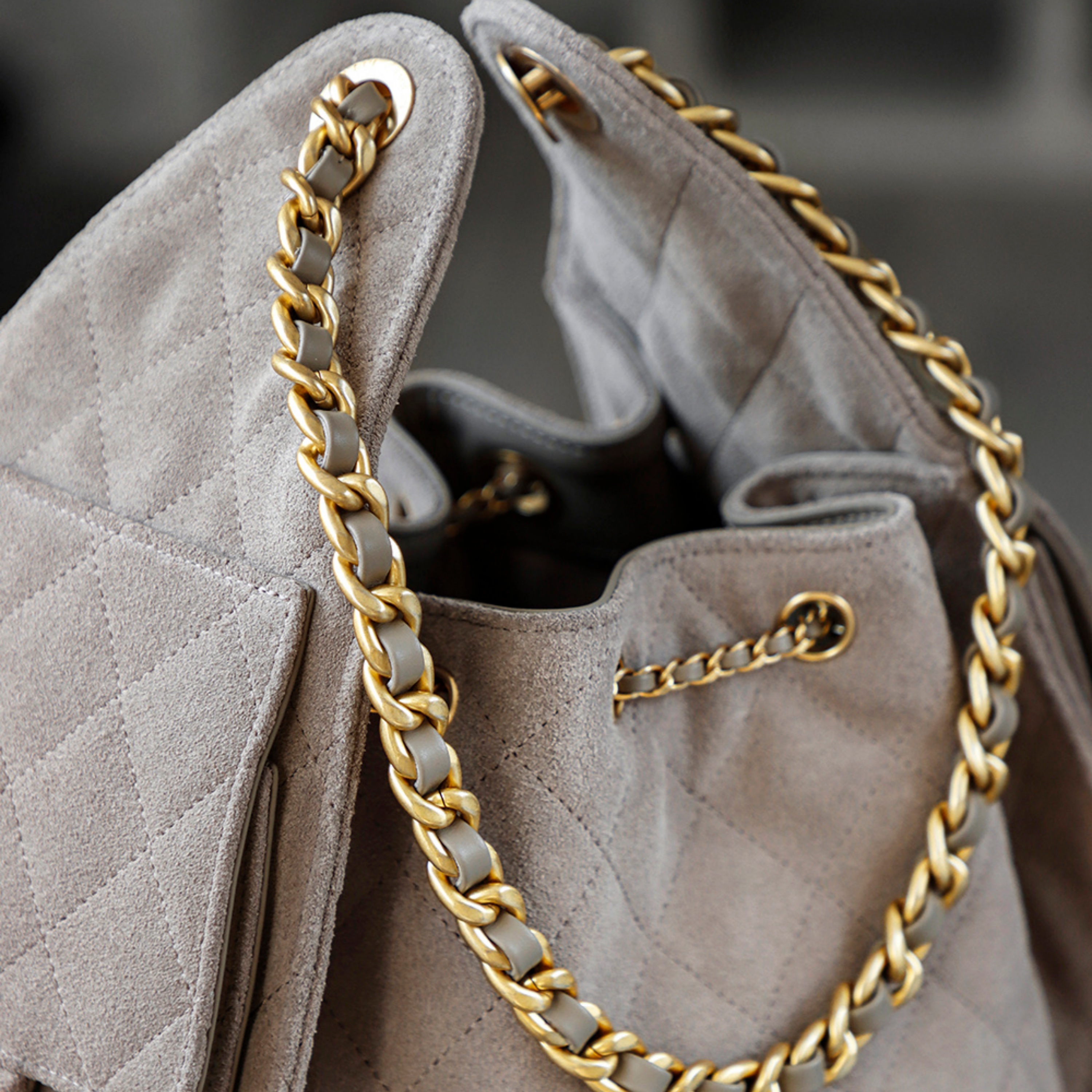 CHANEL 25BAG in Suede Light Grey (Small Size)