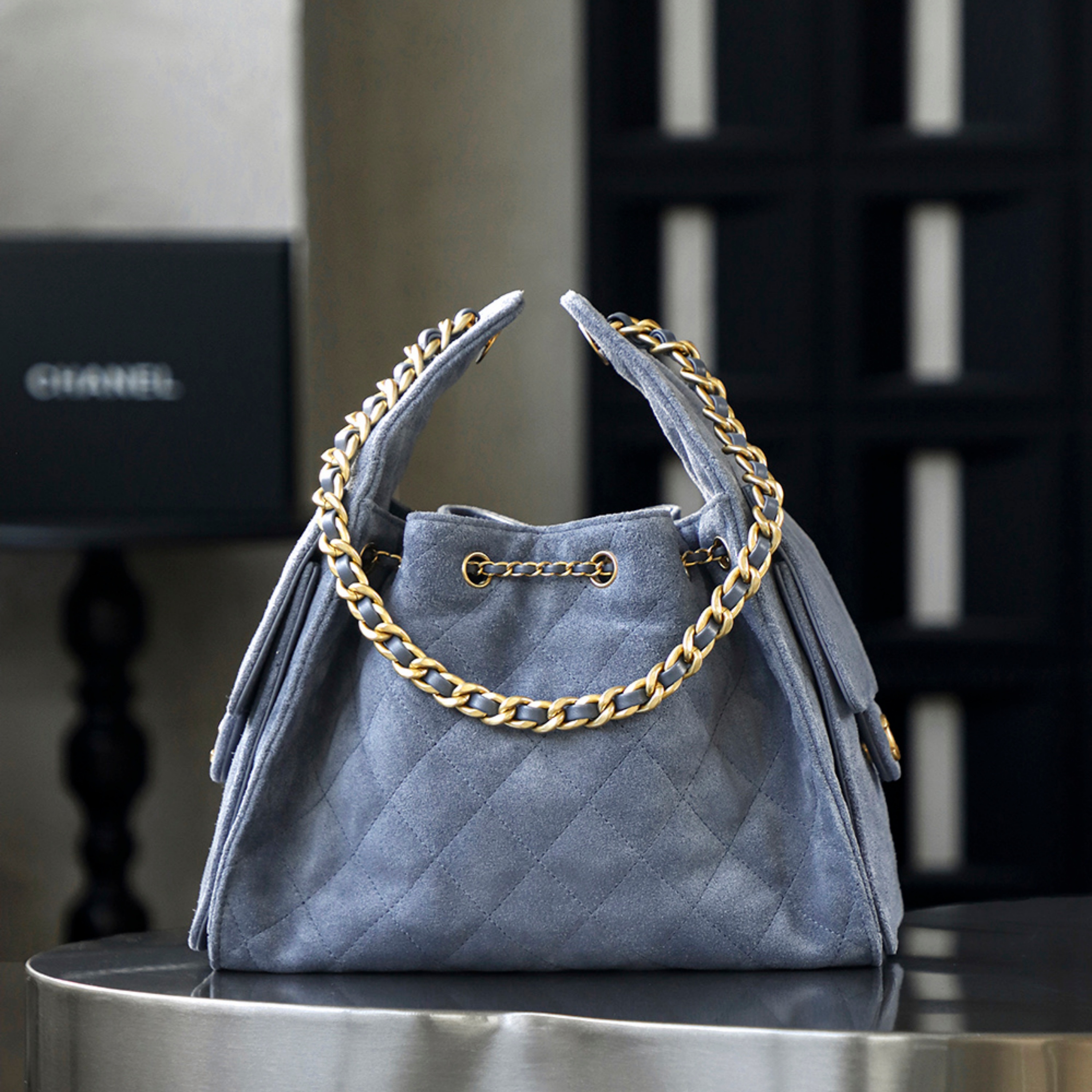 Experience the perfect fusion of timeless elegance and contemporary design with our latest arrival: the CHANEL 25 Bag in a captivating denim blue suede. Meticulously crafted with precision and an unwavering commitment to luxury, this piece embodies the sophistication and artistry synonymous with the world’s most revered fashion houses. From its sumptuous texture to its flawless construction, every detail is curated to meet the highest standards of refinement.