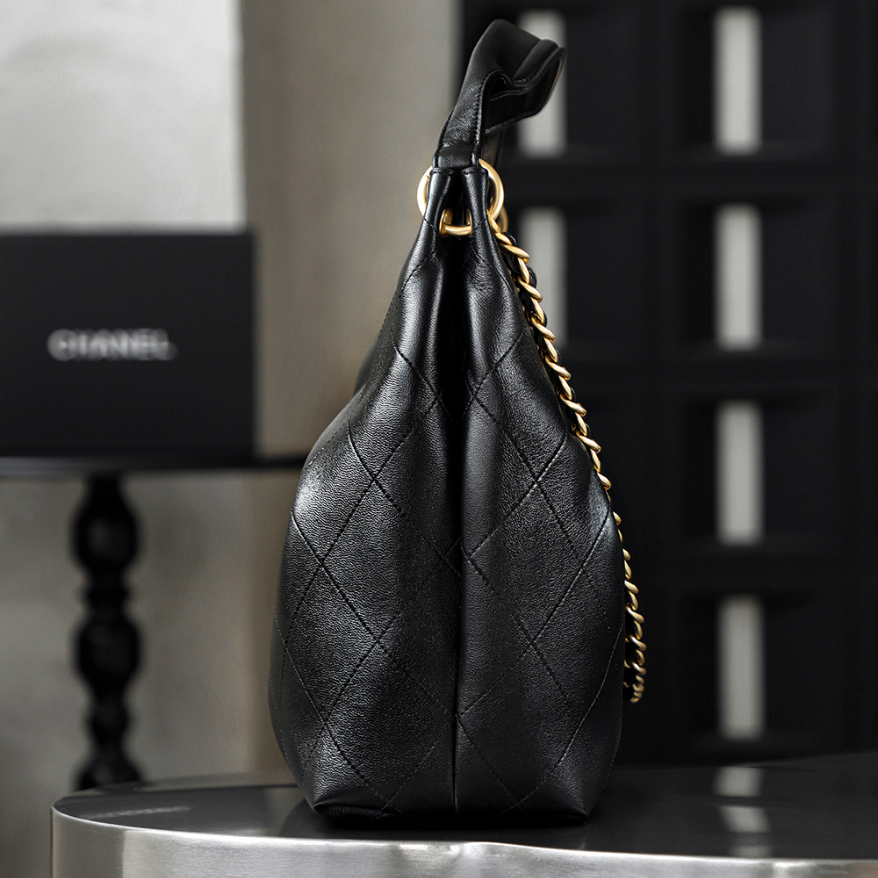 Shape & Structure Patterned directly from an authentic 26C Maxi Hobo, the silhouette captures the relaxed, slouchy elegance of the original design. The structured base and soft body are achieved through reinforced stitching and high-density padding, maintaining the bag’s iconic shape while offering everyday practicality. The dual-chain strap allows for versatile styling, with a drop length calibrated to match the boutique edition exactly.